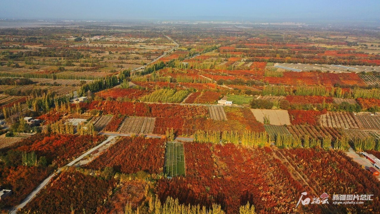 吐鲁番市托克逊县夏镇南湖村万亩杏园秋景(资料图)。李靖海摄
