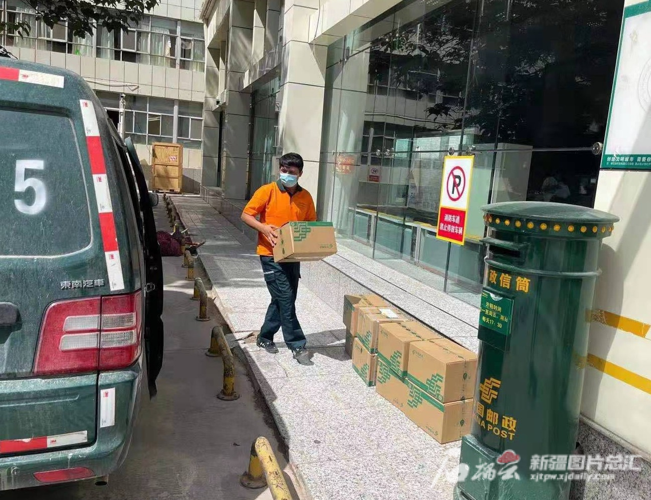 5月5日,米尔卡米力江·吾守尔正在装卸邮件。本人供图