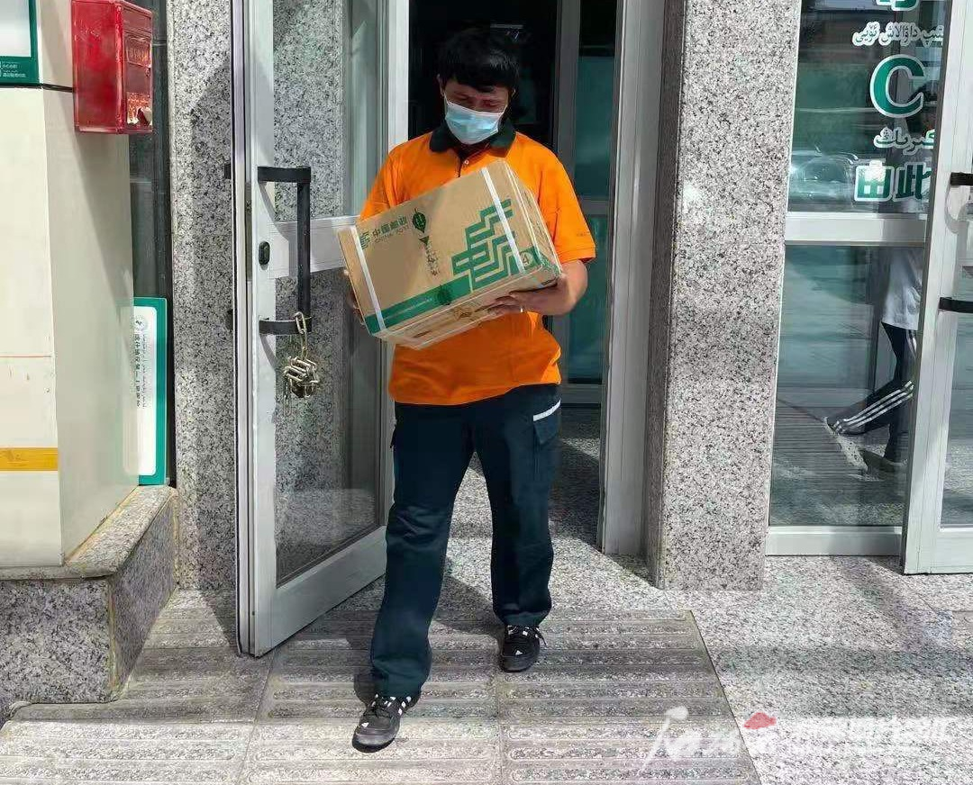 5月5日,米尔卡米力江·吾守尔正在配送邮件。本人供图