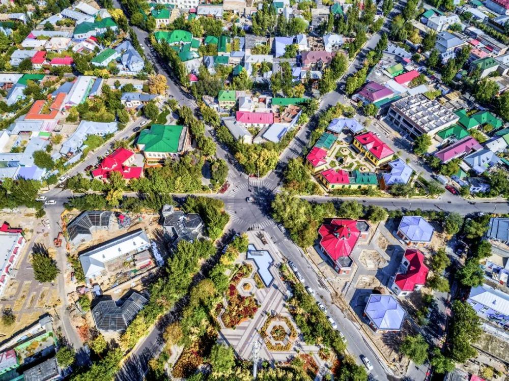 特克斯县,距伊宁市109公里,整个城市呈八卦形态,以太极坛城市展览馆为中心,向外辐射8条主街,与4个环路相交,环环相扣,路路相通。