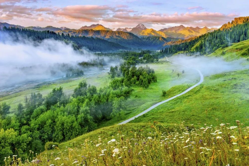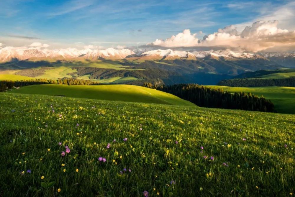 即使在新疆众多风格各异的大美景色里,伊犁也是特别的。群山环绕成绿色的走廊,旷日持久的花海,终年不化的雪山,纵横交错的森林、草场和无边的旷野。伊犁不仅仅是景区、景点,更是一条长达800公里的绝美画廊。