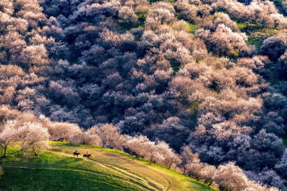 这里有世界自然遗产地喀拉峻草原、库尔德宁;全国最美的六大草原之一那拉提;“百里长卷、天然画廊”的唐布拉草原;“彩虹之都·天马之乡”的昭苏草原。春季,山花漫山遍野、杏花铺天盖地,装饰出锦绣的人间芳菲;夏季,冷香悠远的薰衣草花开成海,打造出温馨的紫色浪漫;秋季,绵亘百里的山峦层林尽染,绘就出绚丽斑斓的画卷;冬季,白雪覆盖的河谷银装素裹,渲染出水墨丹青的边疆壮景。