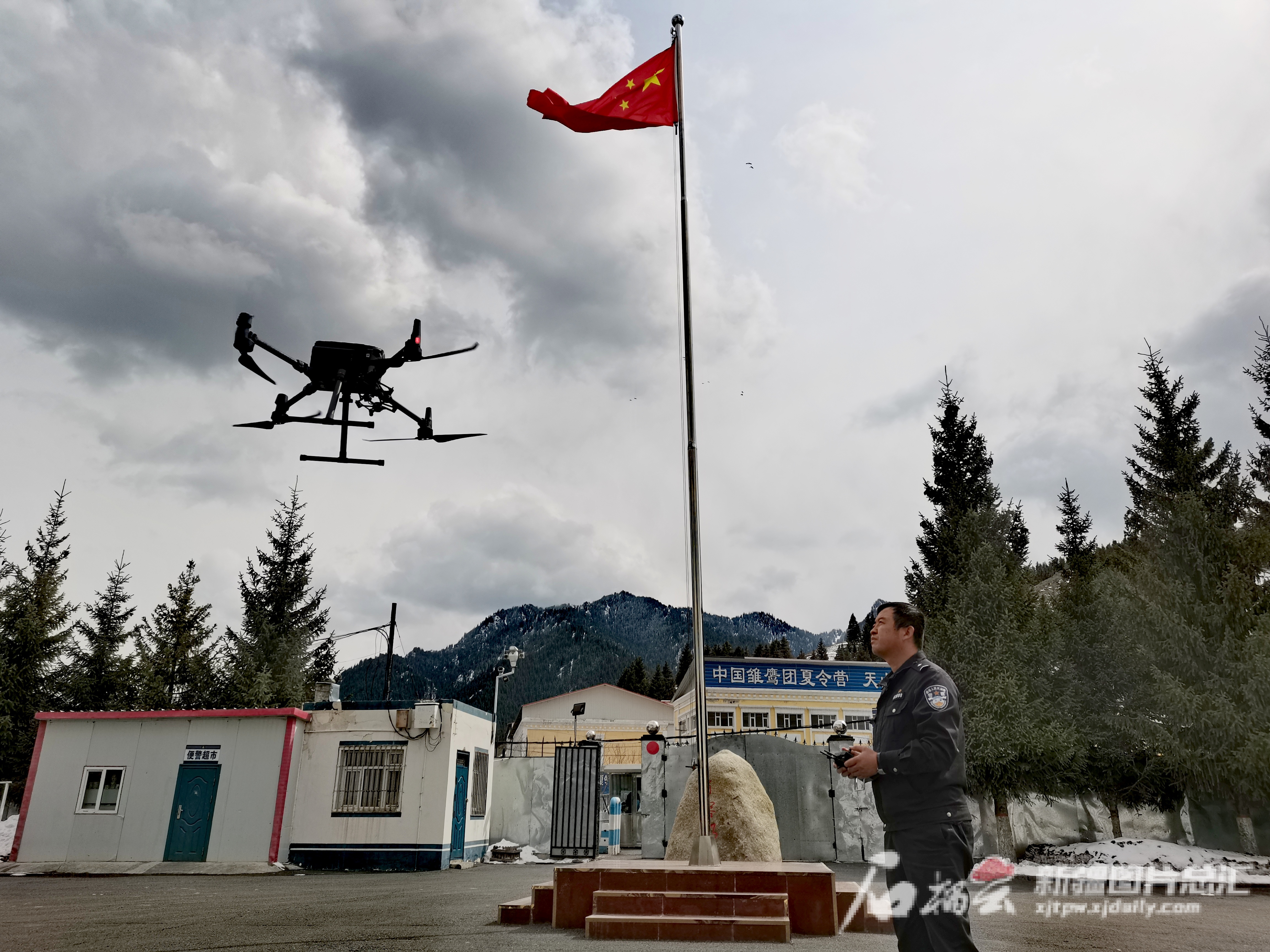 5月6日,乌鲁木齐县公安局巡逻防控大队警航中队中队长杨波进行无人机科目训练。石榴云/新疆日报记者 隋云雁摄