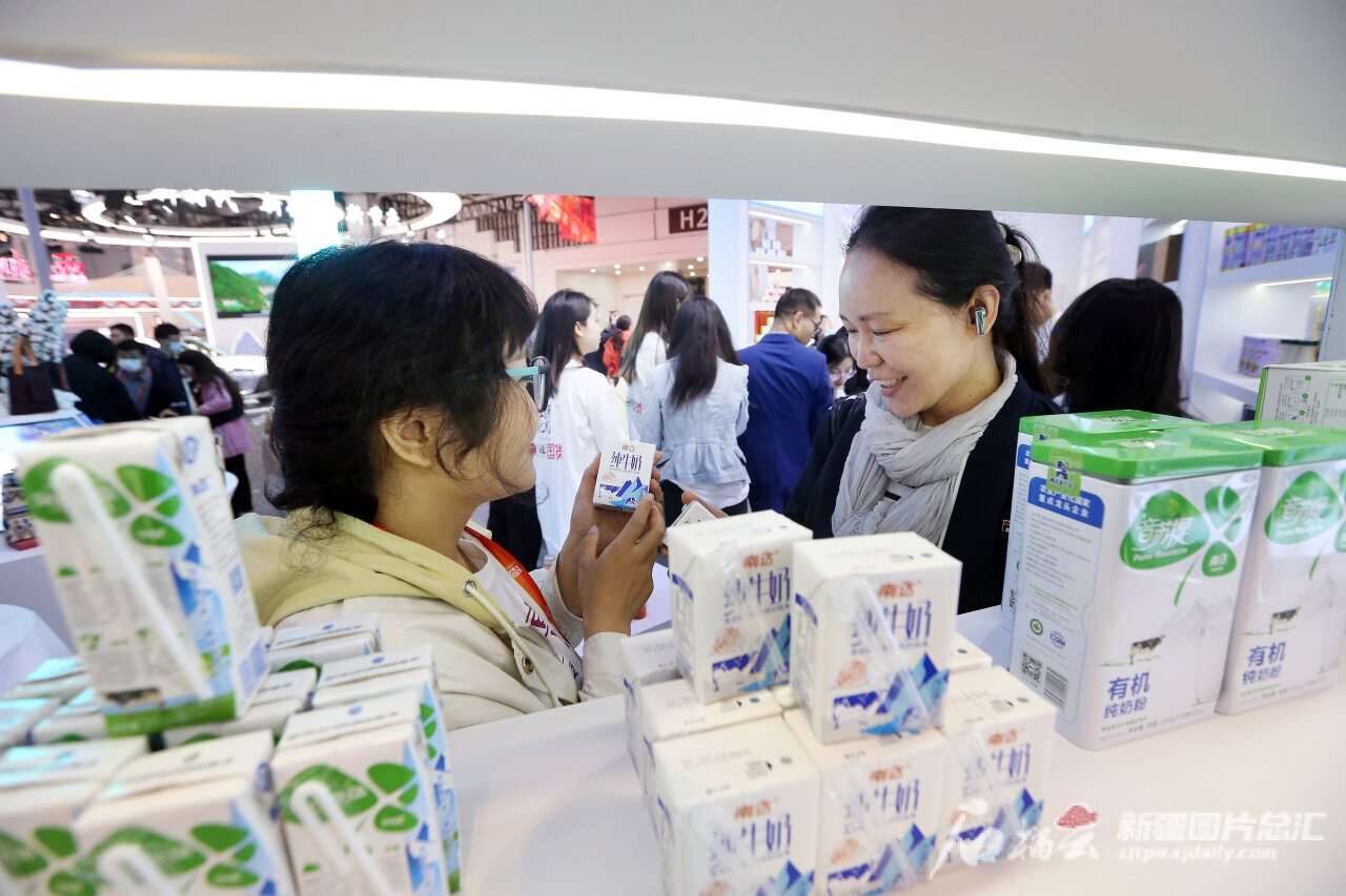 5月10日,观众在南达新农业股份有限公司展位上了解乳制品。