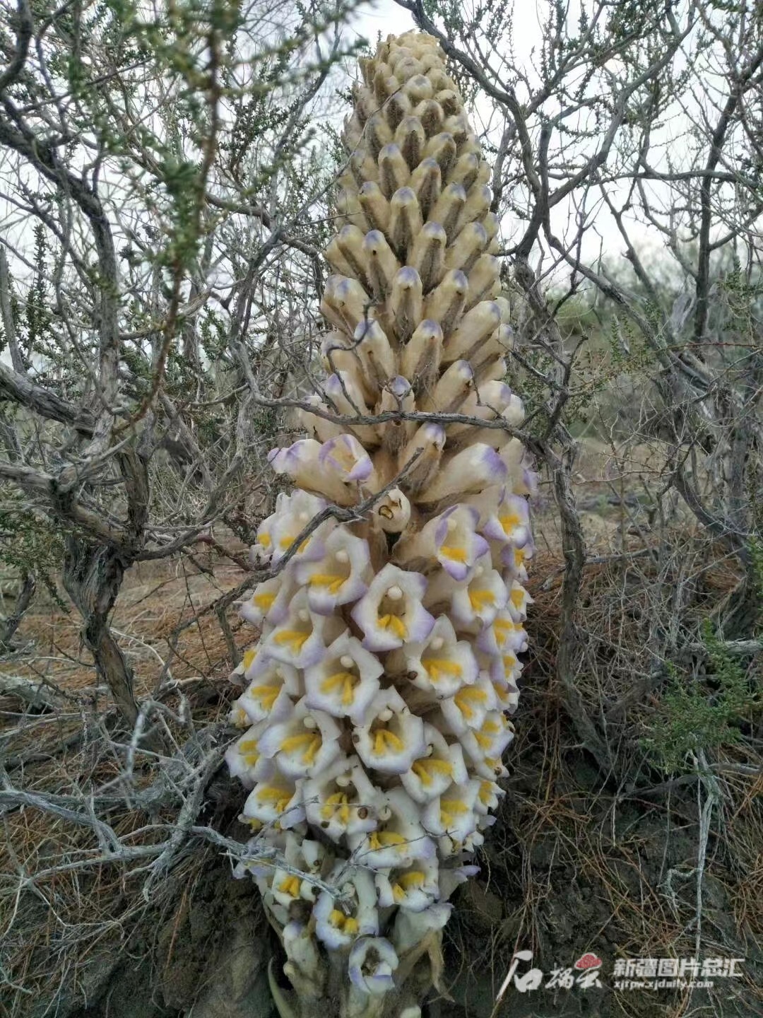 肉苁蓉俗称“大芸”,是一种寄生在沙漠树木梭梭、红柳根部的寄生植物,其主要生长期在4月至5月,主要分布区在新疆、青海等地沙漠里,在防风固沙中发挥着重要作用,对荒漠生态环境改善至关重要。属于濒危物种,国家二级重点保护植物。
