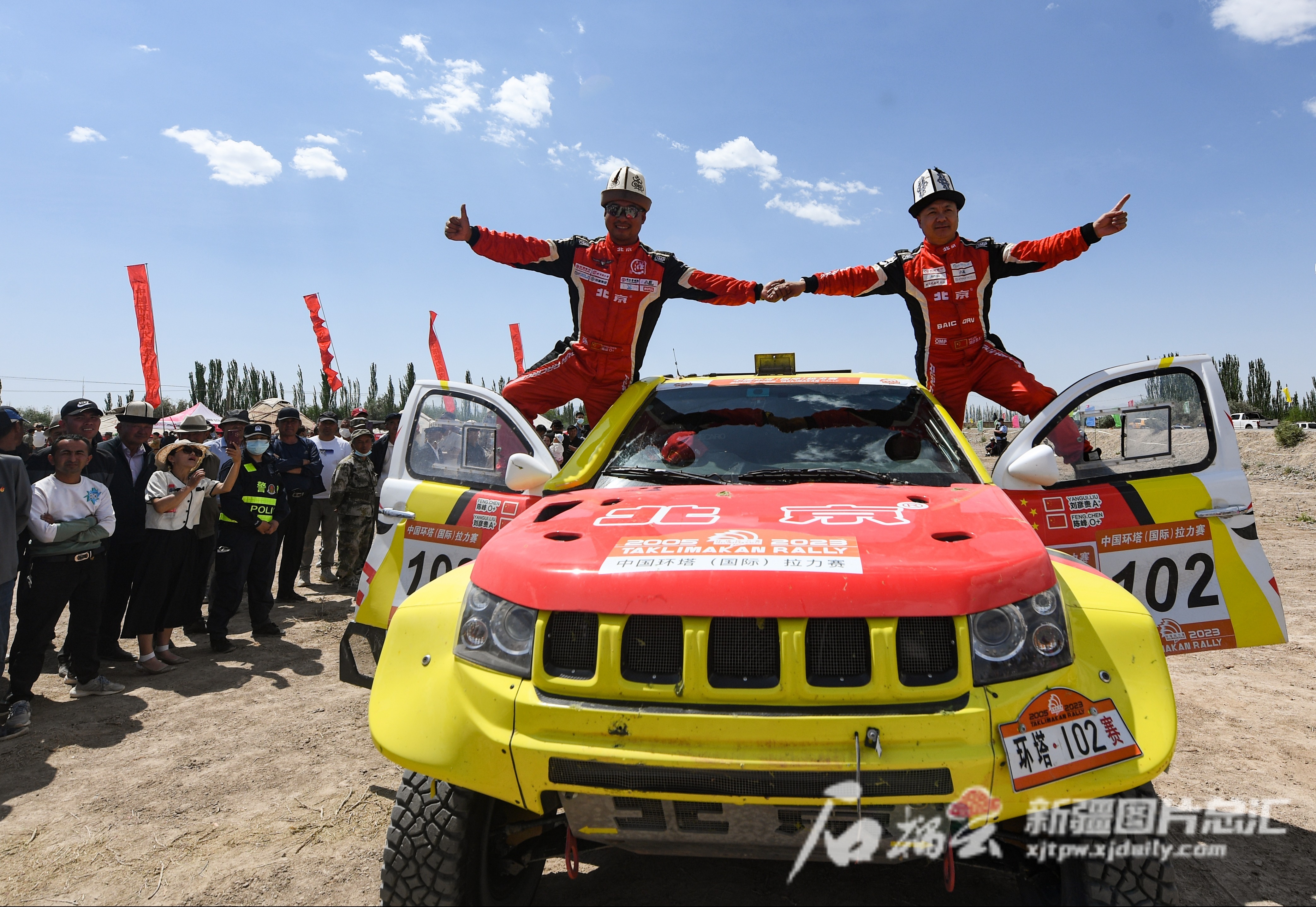5月22日,一对车手抵达终点后向观众示意。石榴云/新疆日报记者 周鹏摄