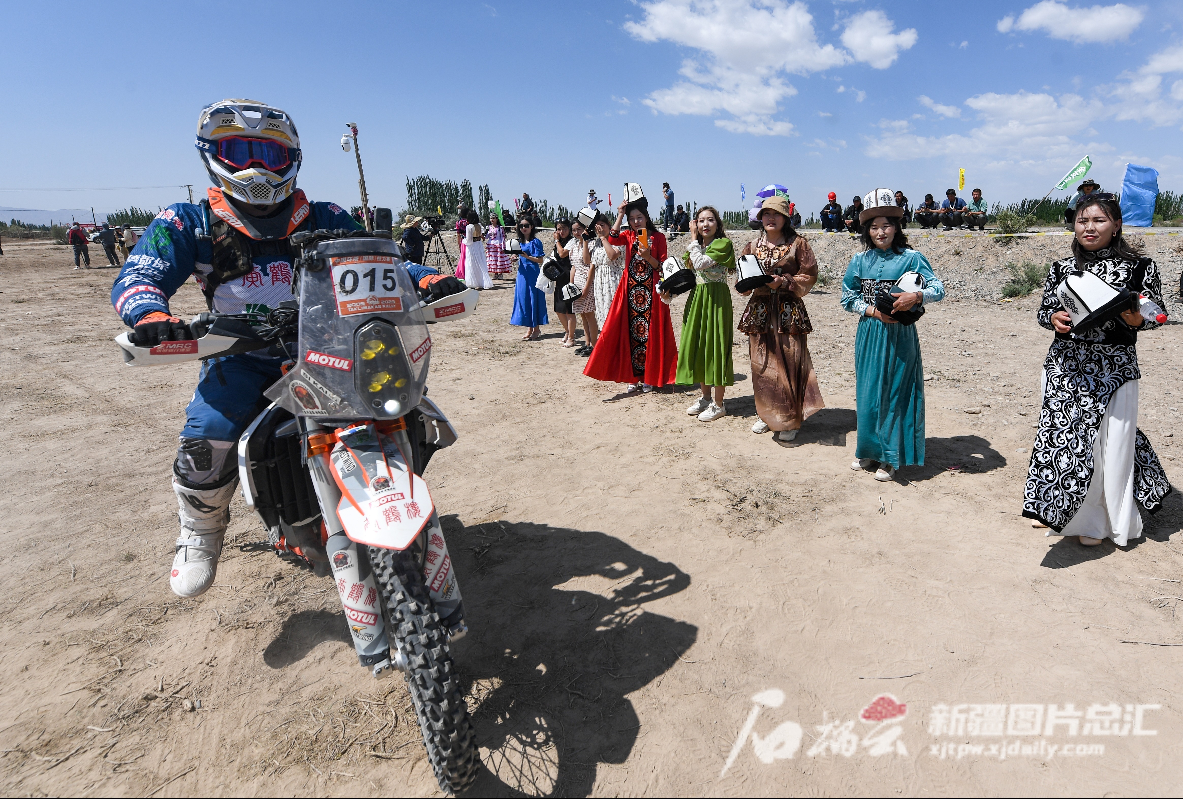 5月22日,当地群众欢迎抵达终点的车手。石榴云/新疆日报记者 周鹏摄