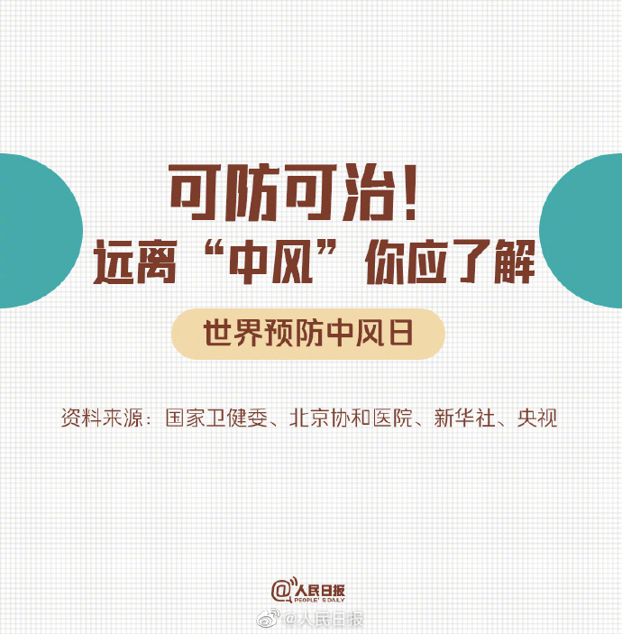 卒中俗称“中风”,被称为“人类健康头号杀手”。其实,中风可防可治。哪些危险因素可能导致中风?发生时有啥异常信号?发现有人中风该怎么做?今天(5月25日)是世界预防中风日,看看这些图,让更多人了解实用知识!