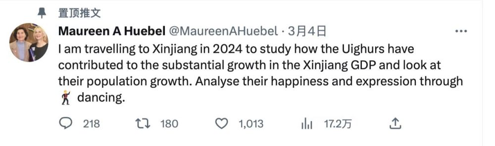 风波过后,许贝尔依然勇敢地在社交媒体上表达自己对一些涉华问题的观点,结果又被“盯上了”。今年3月,许贝尔在社交媒体上发文说:“我计划2024年去新疆,去研究维吾尔族为新疆经济增长做出的实际贡献,了解他们的人口增长情况。”