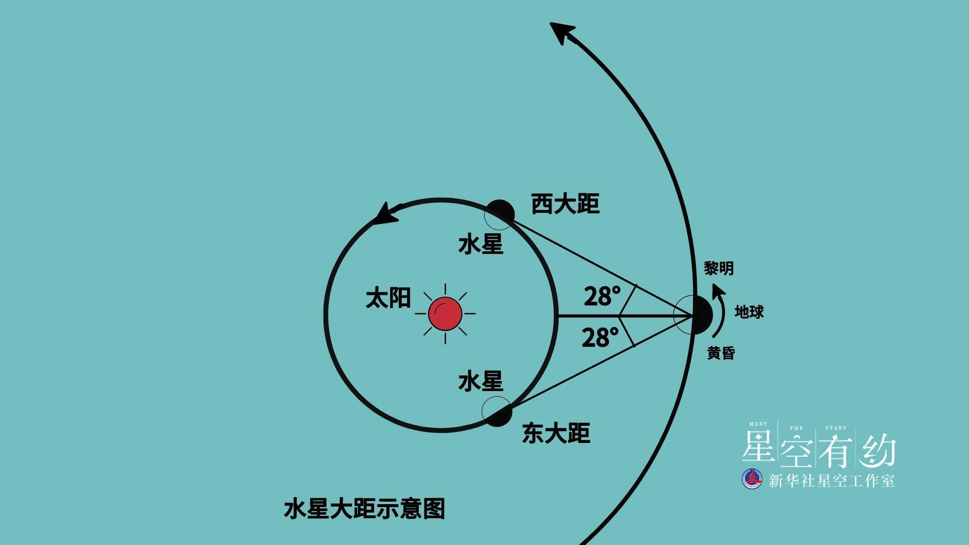 不过,不论是东大距(从地球上看,水星在太阳东侧,会在黄昏时的西边天空出现)还是西大距(从地球上看,水星在太阳西侧,会在黎明时的东方天空出现),看到水星的时间都不会超过2个小时,可以说水星真的是“犹抱琵琶半遮面”。