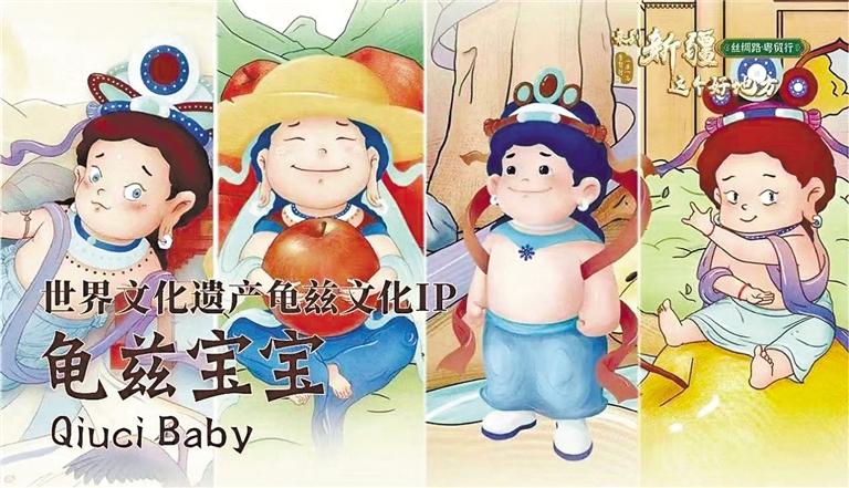 龟兹文化是世界上交互融合古汉唐文化、古印度文化、古希腊文化、古波斯文化的文化综合体。新疆丝绸路粤贸行数字经济研究院充分发挥桥梁平台作用,组建人工智能及数字领域的专家,利用粤贸行沉淀的用户数据,进行智能分析出文创产品的研发方向,以世界文化遗产龟兹文化为切入点,基于古丝绸之路的文化内涵,结合屈铁盘丝绘画技法和现代美学审美,全球首创龟兹文化文创IP“龟兹宝宝”,以数字为载体深入挖掘与创新,以更年轻、更国潮、更卡通的形态呈现龟兹文化,通过市场化推动世界文化遗产走入大众生活,更好地保护、传承及开发龟兹文化,开拓了世界文化遗产发展新路径,助力“打造自信繁荣的数字文化”。