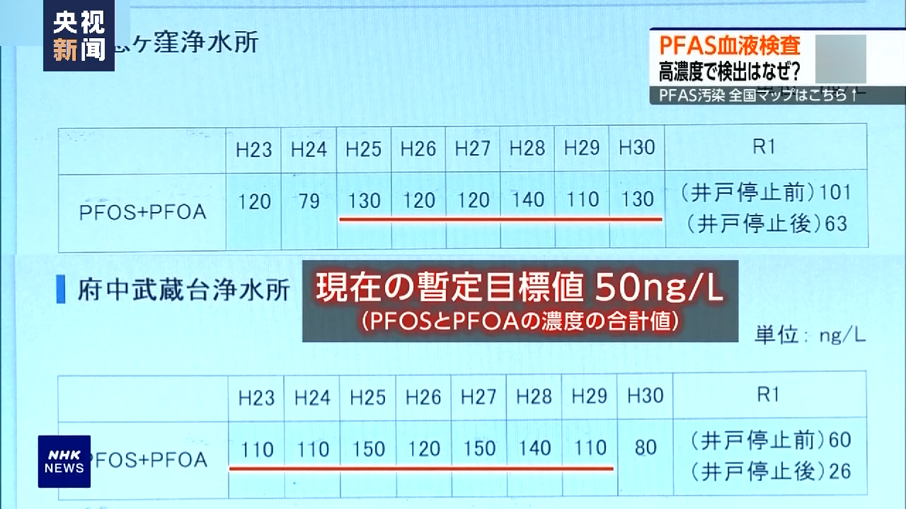而据东京都自来水公司网站发布的消息,多摩地区的水质抽查结果显示,有至少两家净水设施净化过的自来水中有机氟化合物浓度也都是相关标准值的2到3倍。