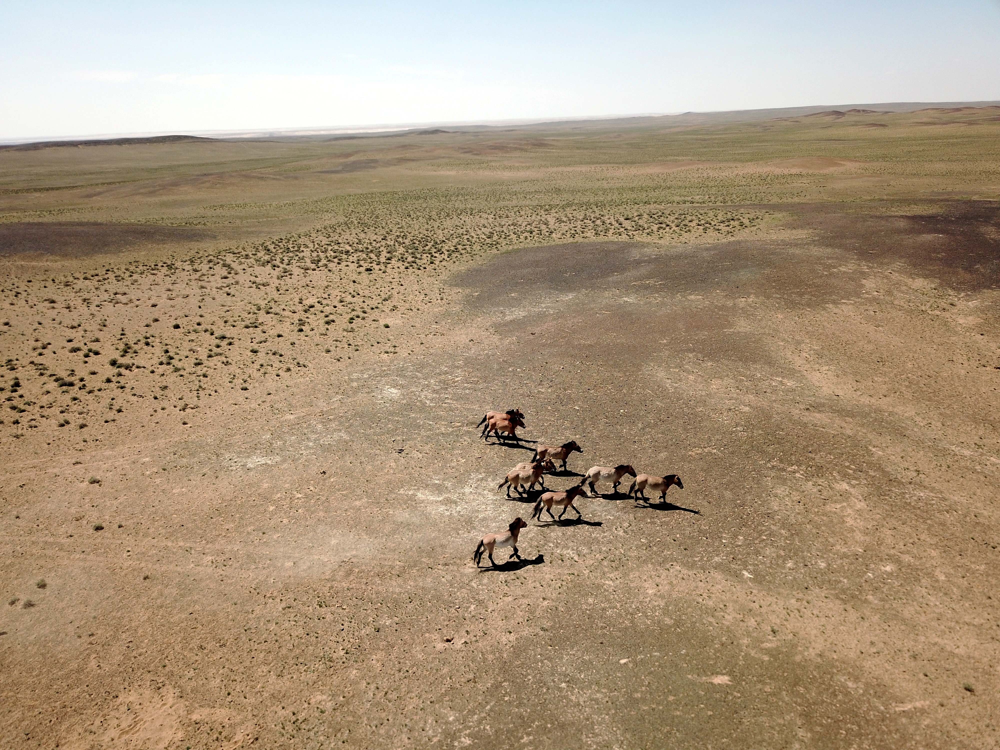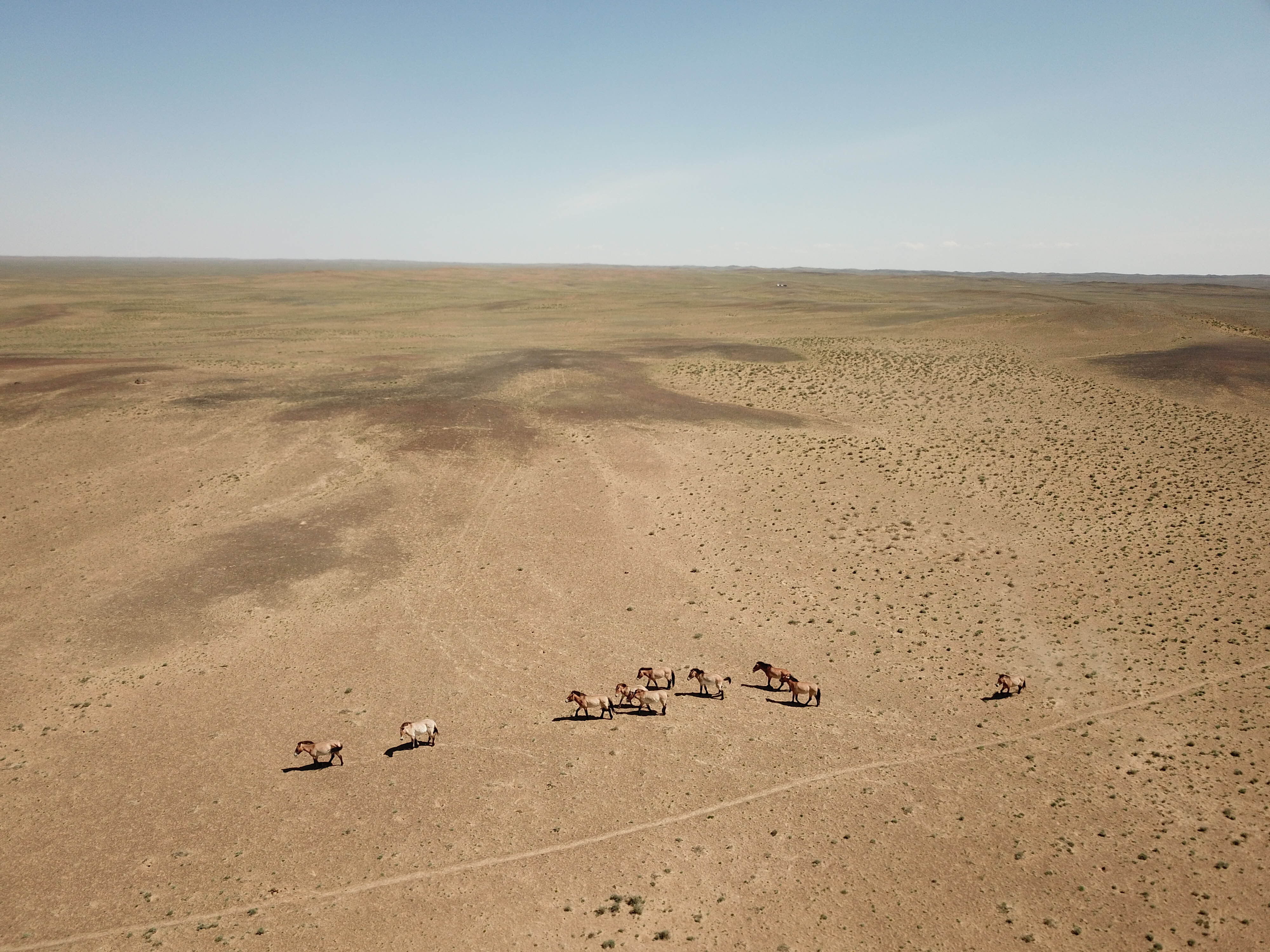 几公里外,巡护员阿达比亚特一脚踩在皮卡车侧缘,手握望远镜,对做记录的同伴念道:“(一共)18匹马,1匹成年雄性,8匹成年雌性,6只亚成体,3只幼体……”说罢,他跳下皮卡:“走吧,它们都挺好的,我们别再靠近了。”