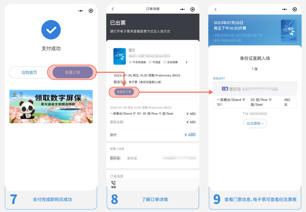 持纸质门票的公众,须于7月22日24:00前使用成都大运会官方票务网站账户注册手机号,拨打官方票务咨询热线(028-114转8)提交并完成观赛人信息更改。
