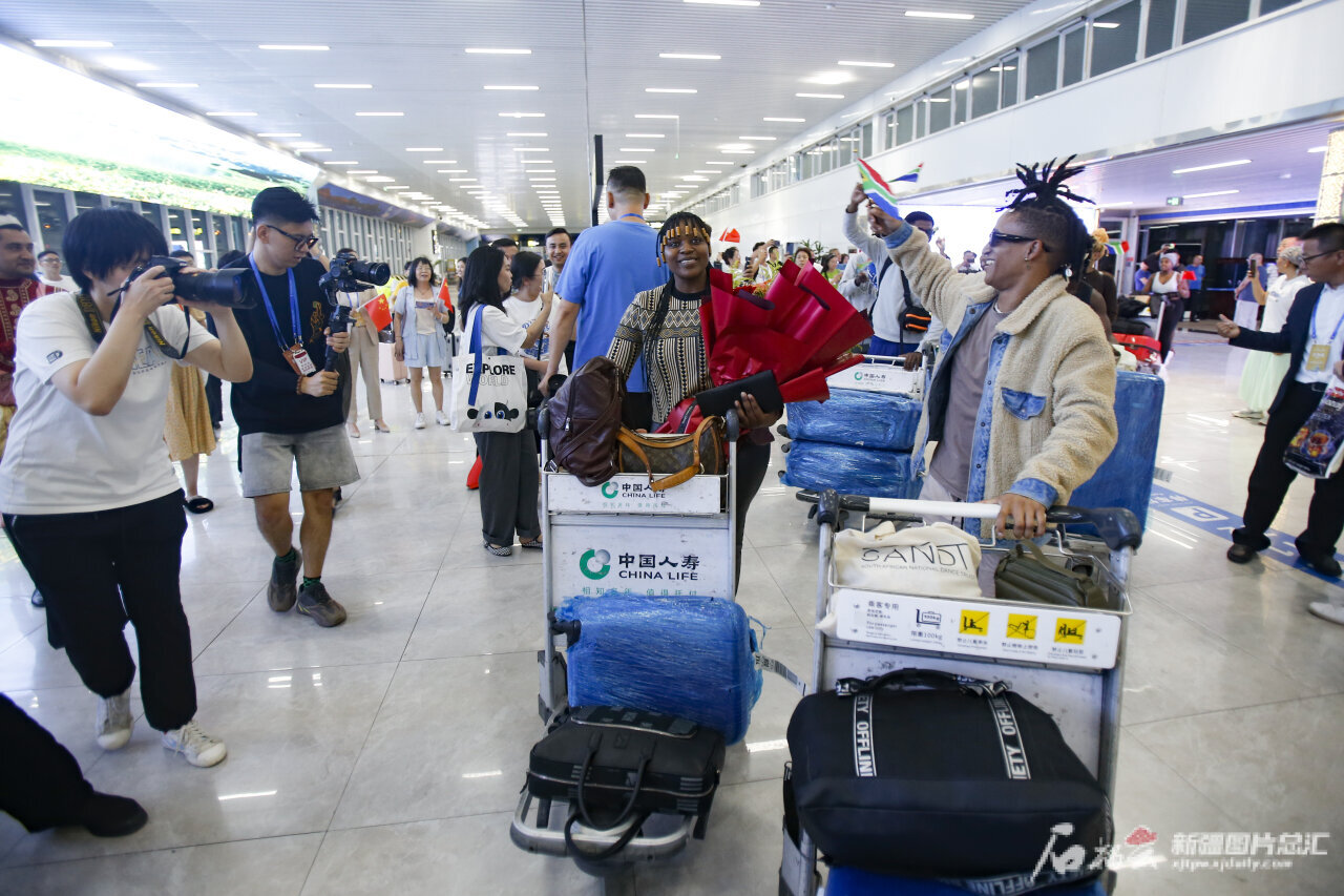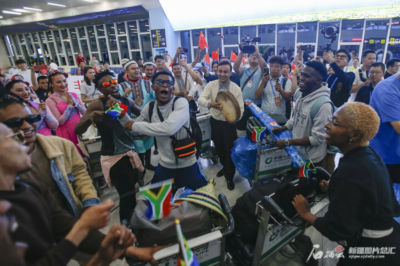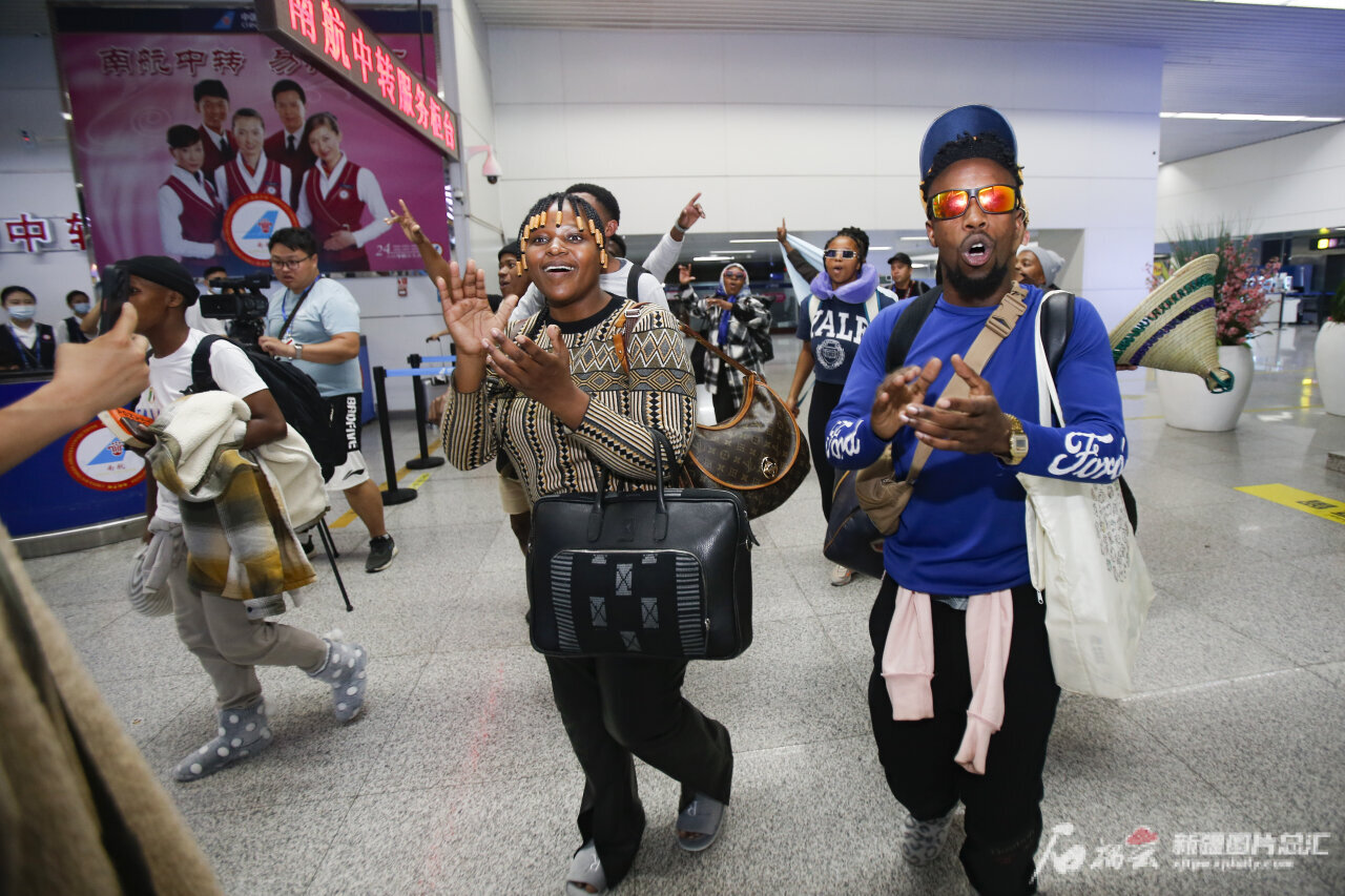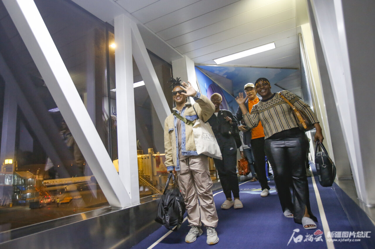 南非埃尔维斯舞蹈艺术团抵达乌鲁木齐地窝堡国际机场。