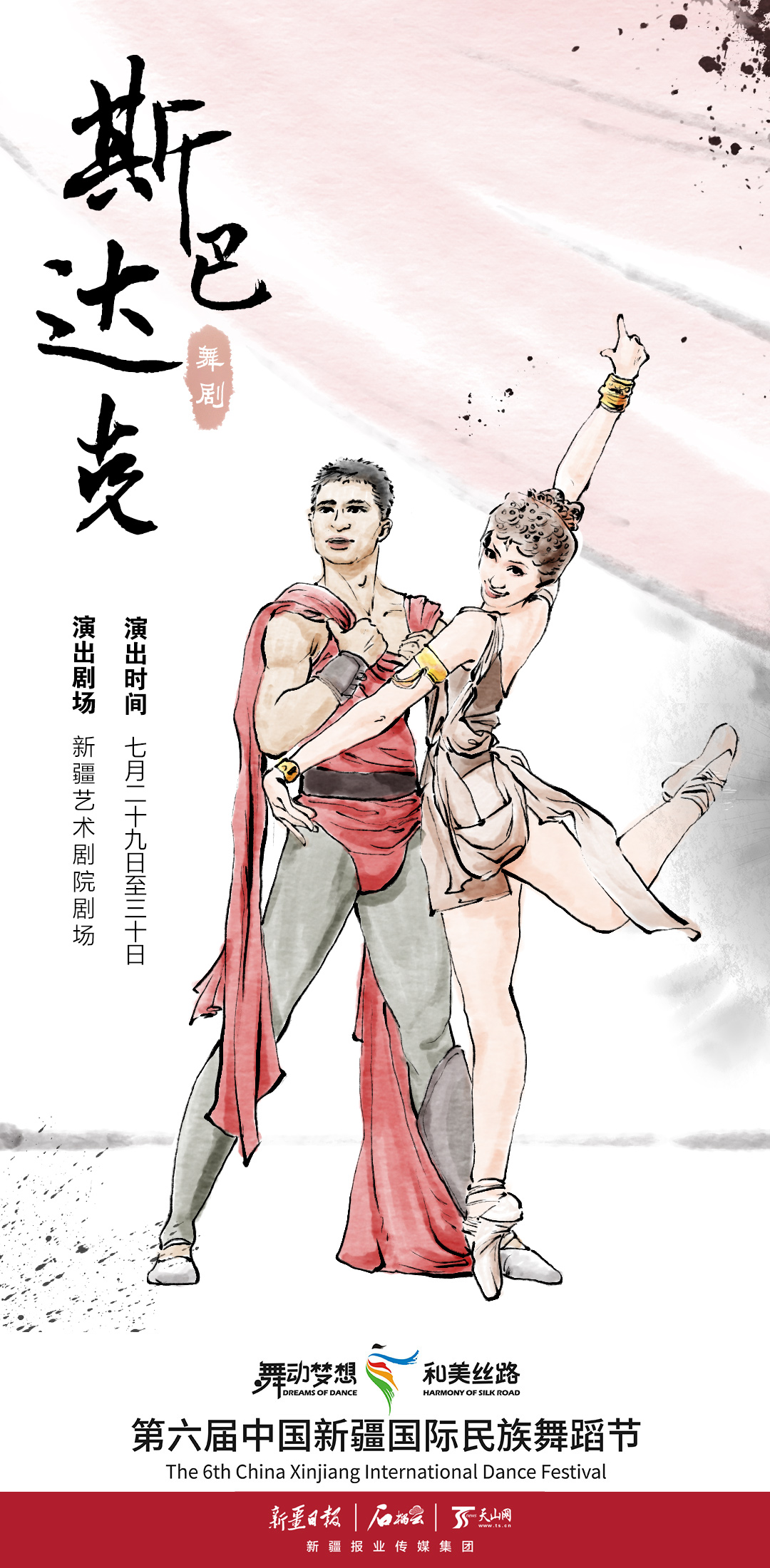 第六届中国新疆国际民族舞蹈节手绘海报丨舞剧《斯巴达克》