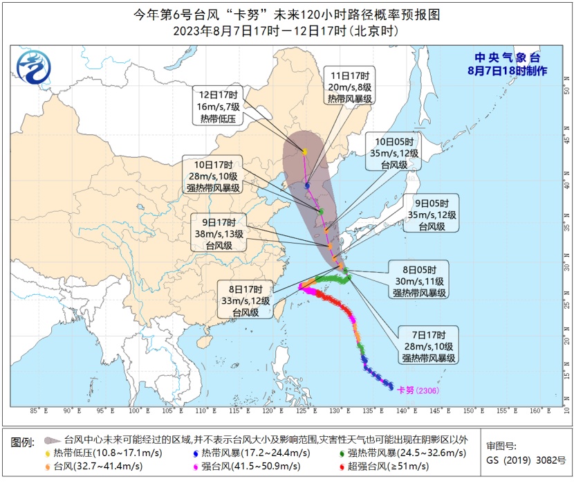 据中央气象台7日消息,台风“卡努”要再来个大转弯,将在日本西南部海面转向偏北方向移动,或再回我国登陆。目前形势来看,台风“卡努”后期可能还将影响我国东北地区。未来(10-12日),受西风槽和“卡努”的共同影响,东北地区东部和北部又将有大雨或暴雨,局地大暴雨,累积局地可达200毫米,当地公众需警惕频繁降水可能引发的各类次生灾害。