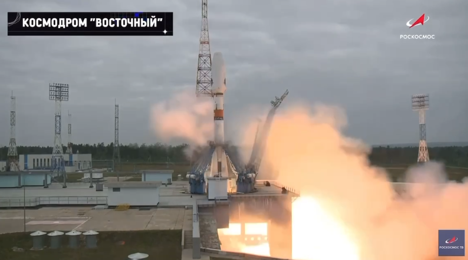 当地时间11日,载有“月球-25”号无人月球探测器的“联盟-2.1b”火箭在东方发射场点火升空。