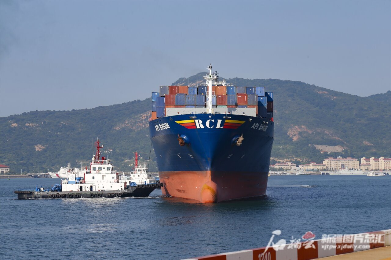 8月7日,一艘外籍货轮驶入连云港集装箱码头,准备靠港装卸货物。