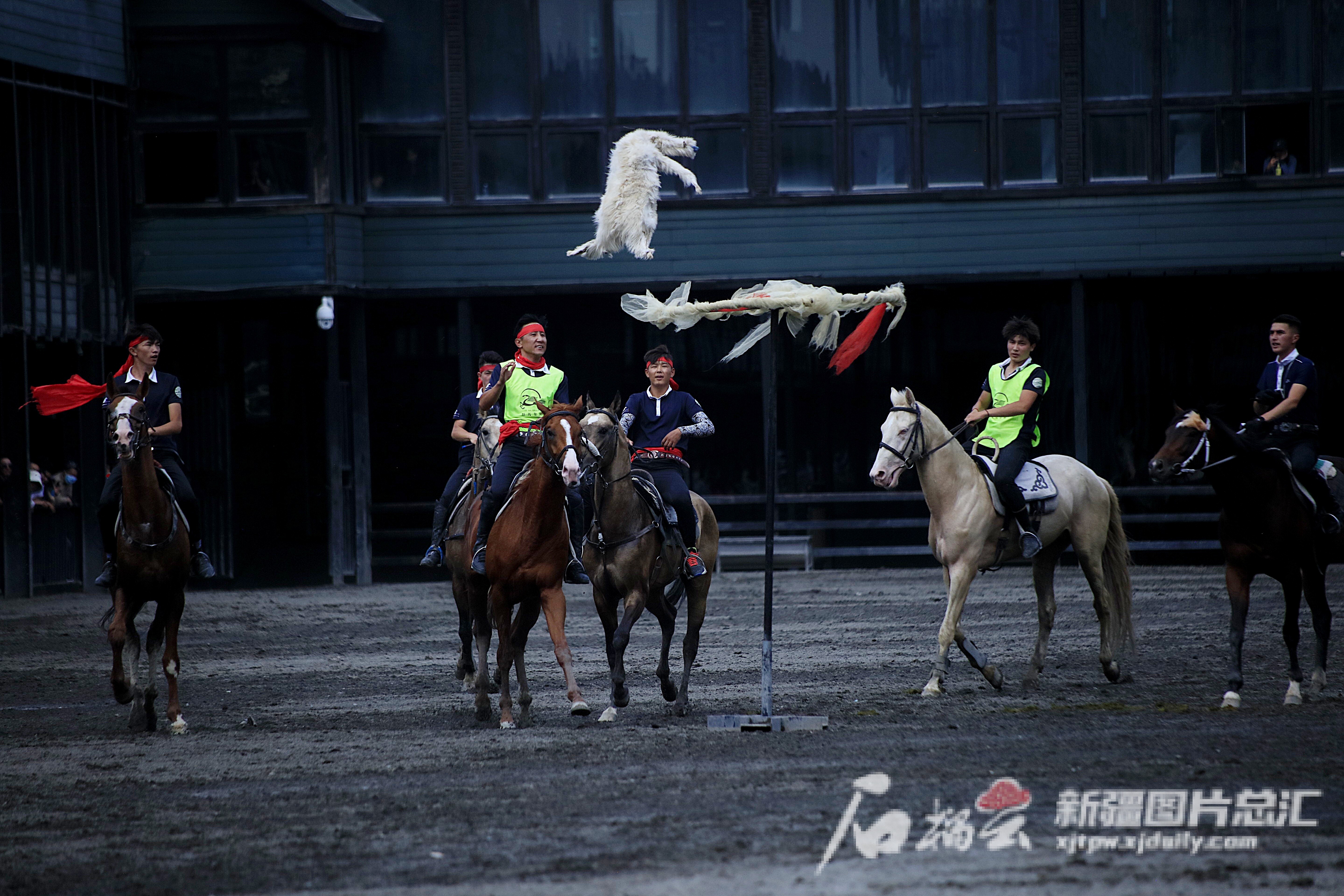 作为马产业链主企业野马集团有限公司上半年围绕马产业的一二三产营收8600余万元,图为在其三产标志地野马古生态园展开的刁羊表演。李铭摄