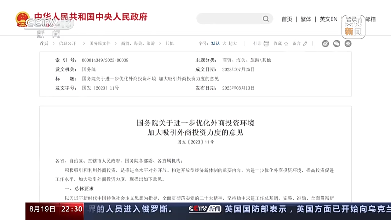 近几个月以来,为了抓经济促消费,国家出台了不少文件,而且级别都非常高。而在8月13日,关注点放在了外商与外资的身上,国务院出台《关于进一步优化外商投资环境加大吸引外商投资力度的意见》,提出了六方面24条政策措施。虽然一段时间以来,促进民营经济发展壮大是一个重要的焦点,但国外的投资预期当然也不能降下来,虽然外资企业占比不到全国企业总数的3%,但创造了中国2/5的对外贸易,1/6的税收收入和近1/10的城镇就业,并且是中国改革开放的重要标志和成果,在前几年就有了《外商投资法》的背景之下,这次国务院颁发的相关意见重点何在?要解决什么问题?《新闻周刊》本周视点关注:练“内功”稳外资。