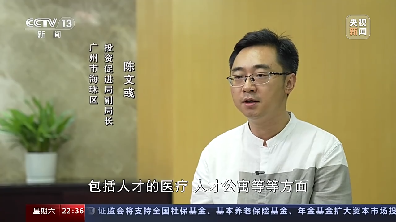 广州市海珠区投资促进局副局长 陈文彧:服务方面其实这几年,我们主要是通过人才的子女教育,包括人才的医疗、人才公寓等等方面,为我们的企业提供好的优质的服务。