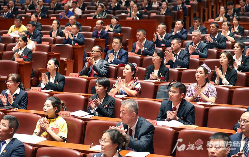 8月20日,大会听取自治区总工会第十二届委员会工作报告,与会代表报以热烈掌声。天山网-新疆日报记者 崔志坚 摄