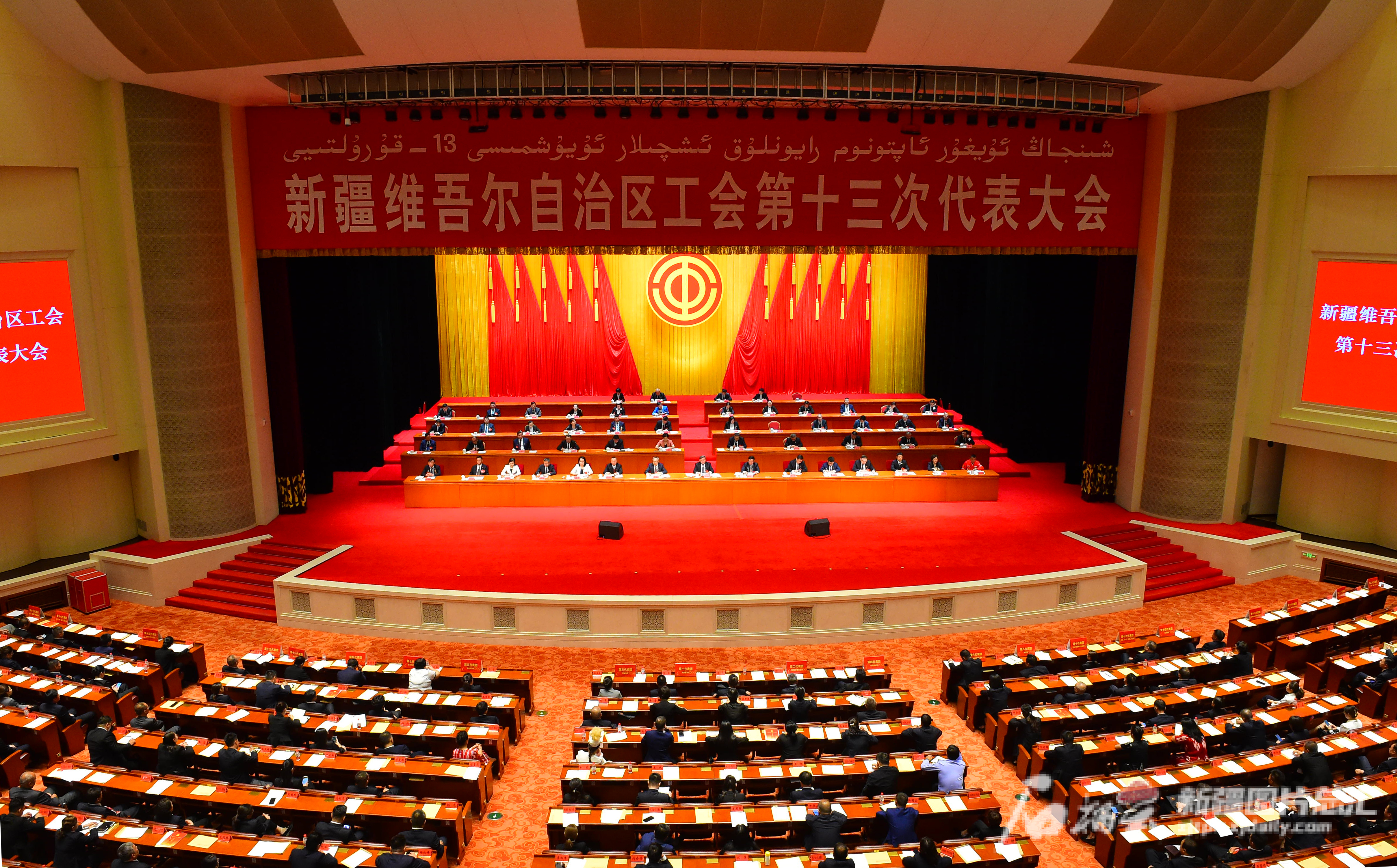 自治区工会第十三次代表大会会议现场。武钧摄