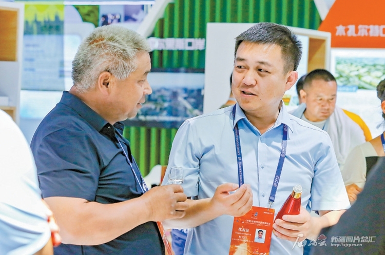 8月19日,客商在2023(中国)亚欧商品贸易博览会阿克苏地区展厅参观体验。