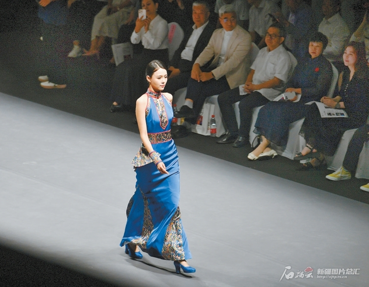 8月17日,模特在2023年“丝路向未来”第七届亚欧时装周开幕式上走秀。