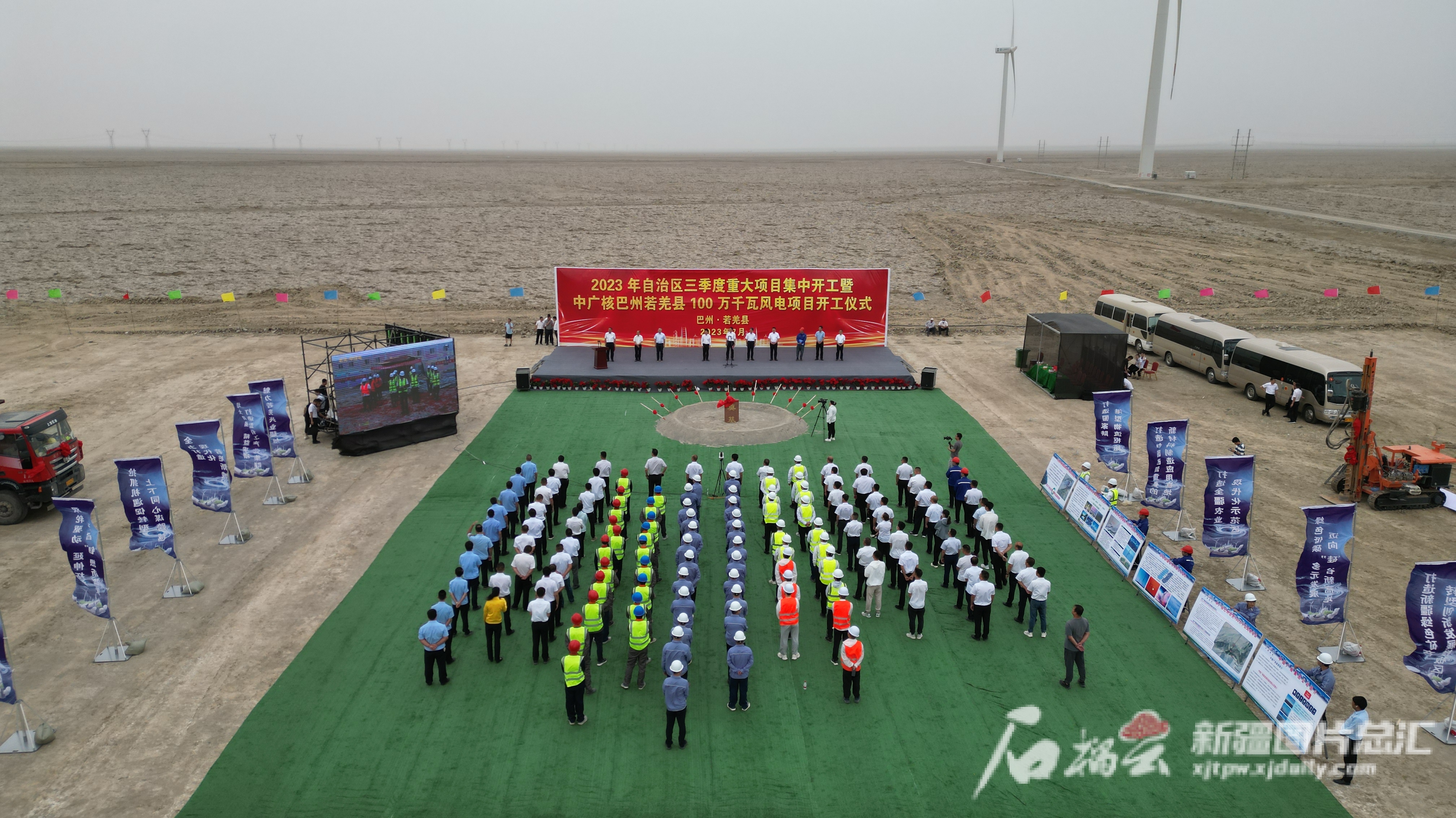 7月30日,中广核巴州若羌县100万千瓦风电项目开工(无人机照片)。董帅龙摄
