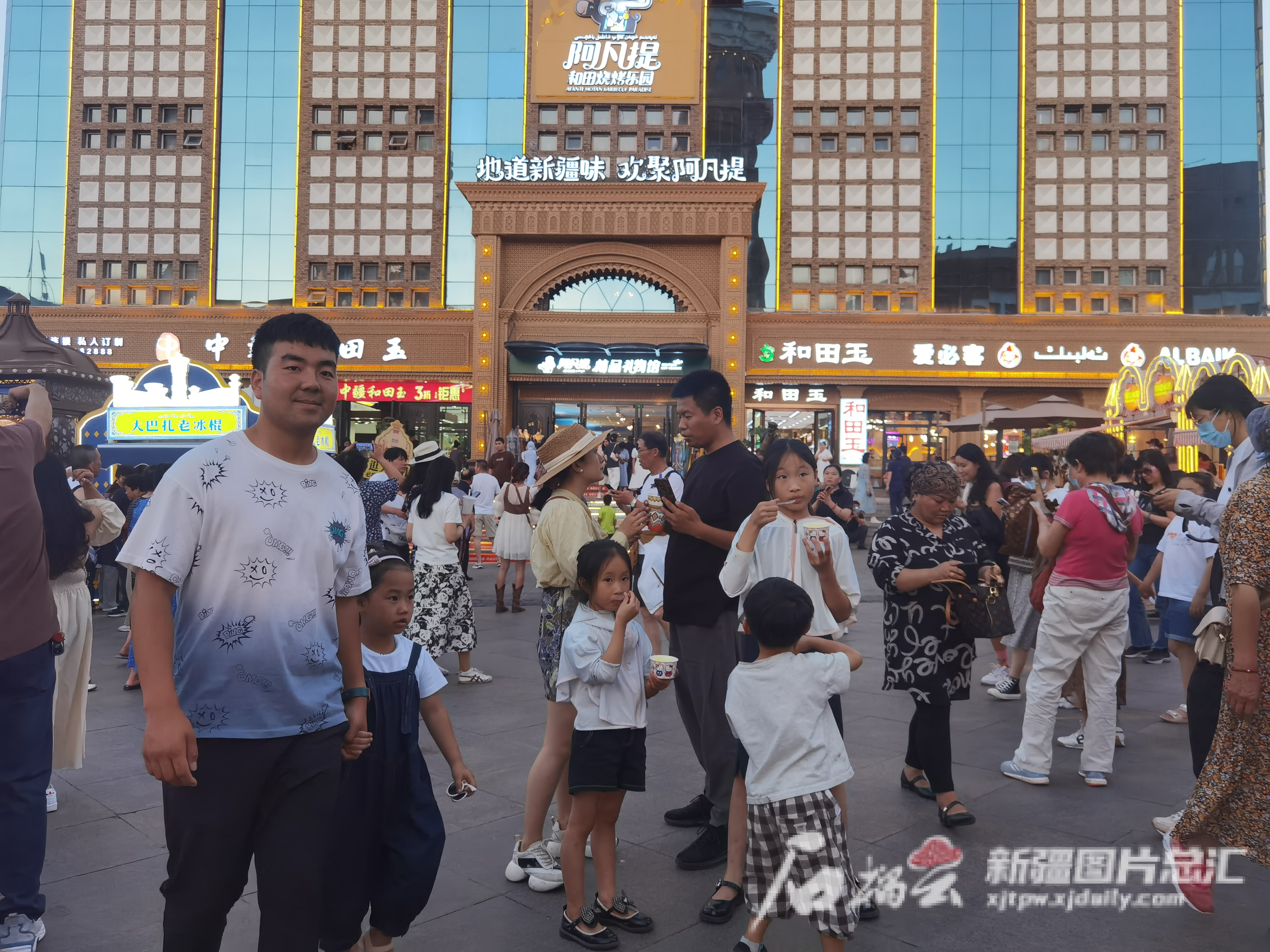 7月13日,新疆国际大巴扎景区游客如织。石榴云/新疆日报记者 于江艳摄