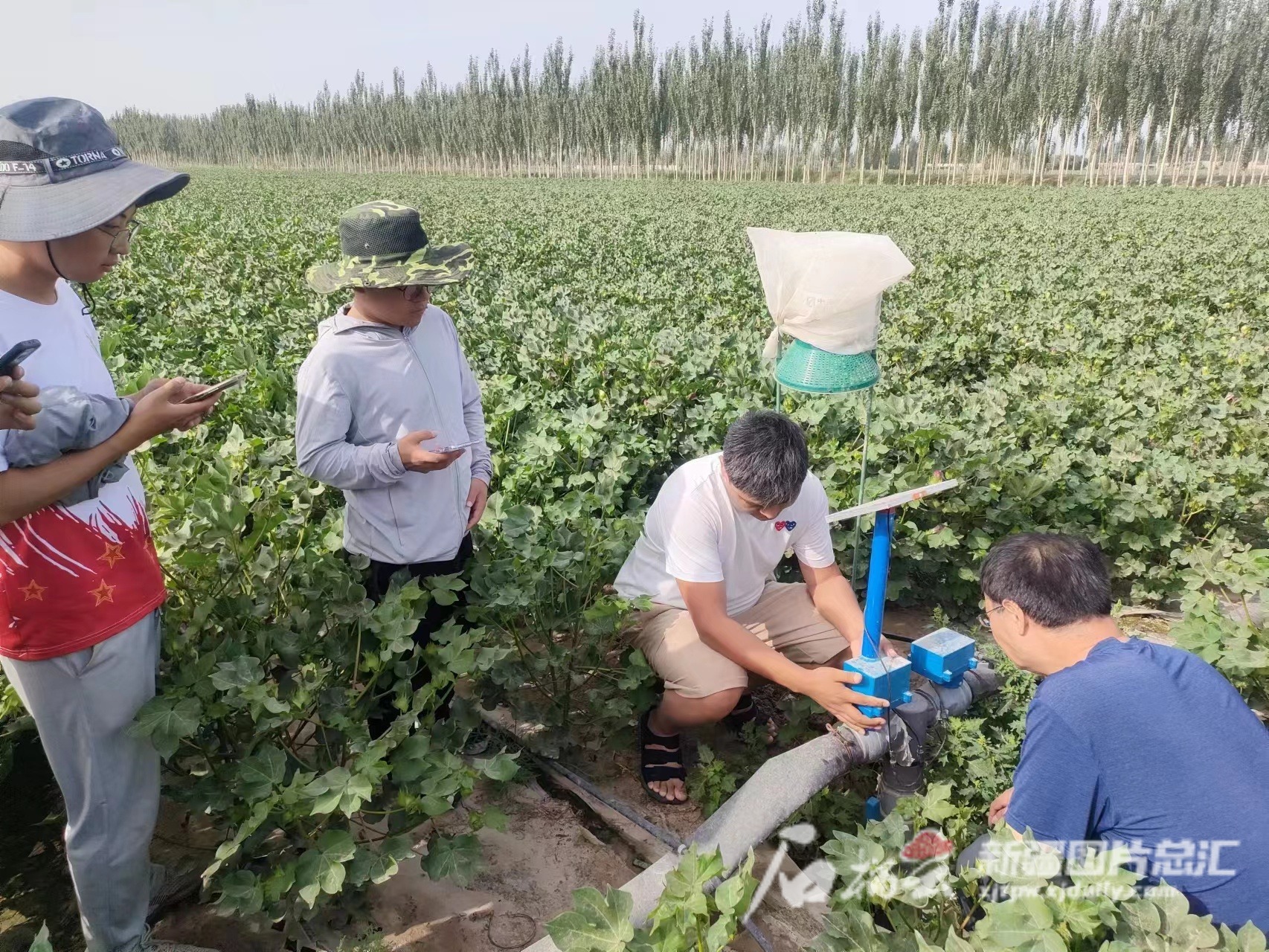 7月25号,新疆农业大学数字农业研发设计团队在沙雅县海楼镇开展智慧棉田关键技术应用示范和推广。新疆农业大学供图