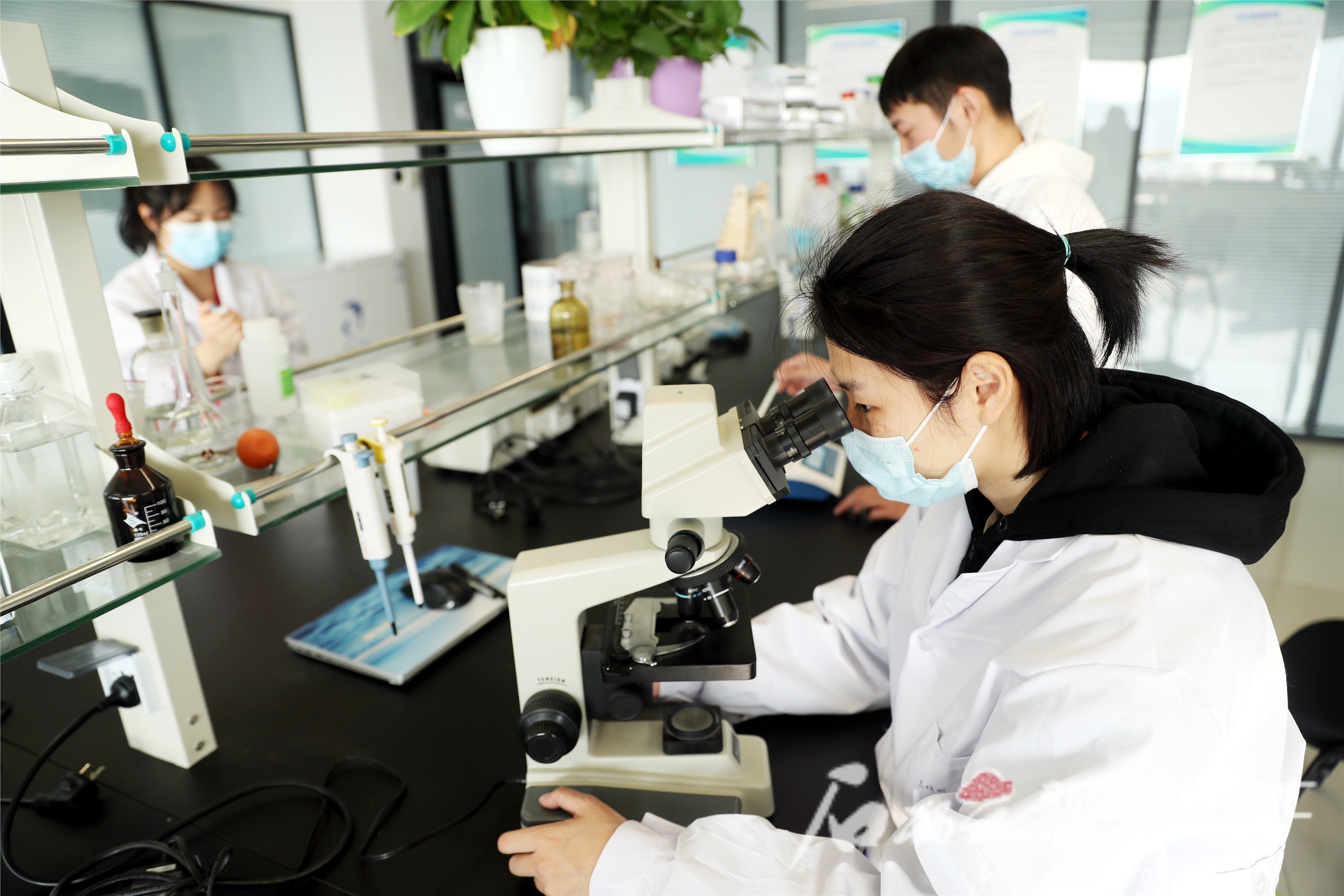 在申新数字经济产业加速器实验室,入孵企业员工在进行实验(资料图)。张秀科摄