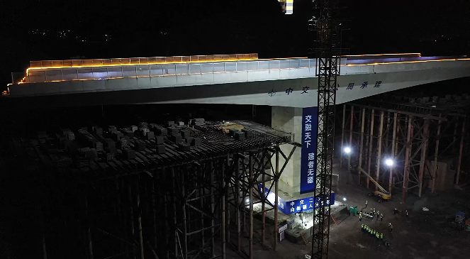 9月7日凌晨2时,自治区和乌鲁木齐市重点建设项目东二环燕北段主线及辅道完善工程建设工地,1.65万吨重的刚构桥坐落在距离地面28米高钢筋混凝土桥墩柱上,转体桥桥体宽33米,为双向八车道城市快速路。
