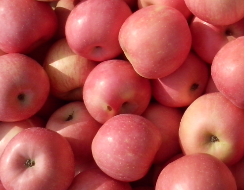 新疆红富士苹果果面光滑细腻,果点隐约可见,苹果色泽光亮,颜色略黄,咀嚼后果味浓郁,基本无残渣,营养价值丰富。