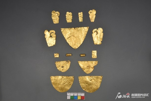 尖甲坡墓群出土的金箔和金器。刘亚辉摄