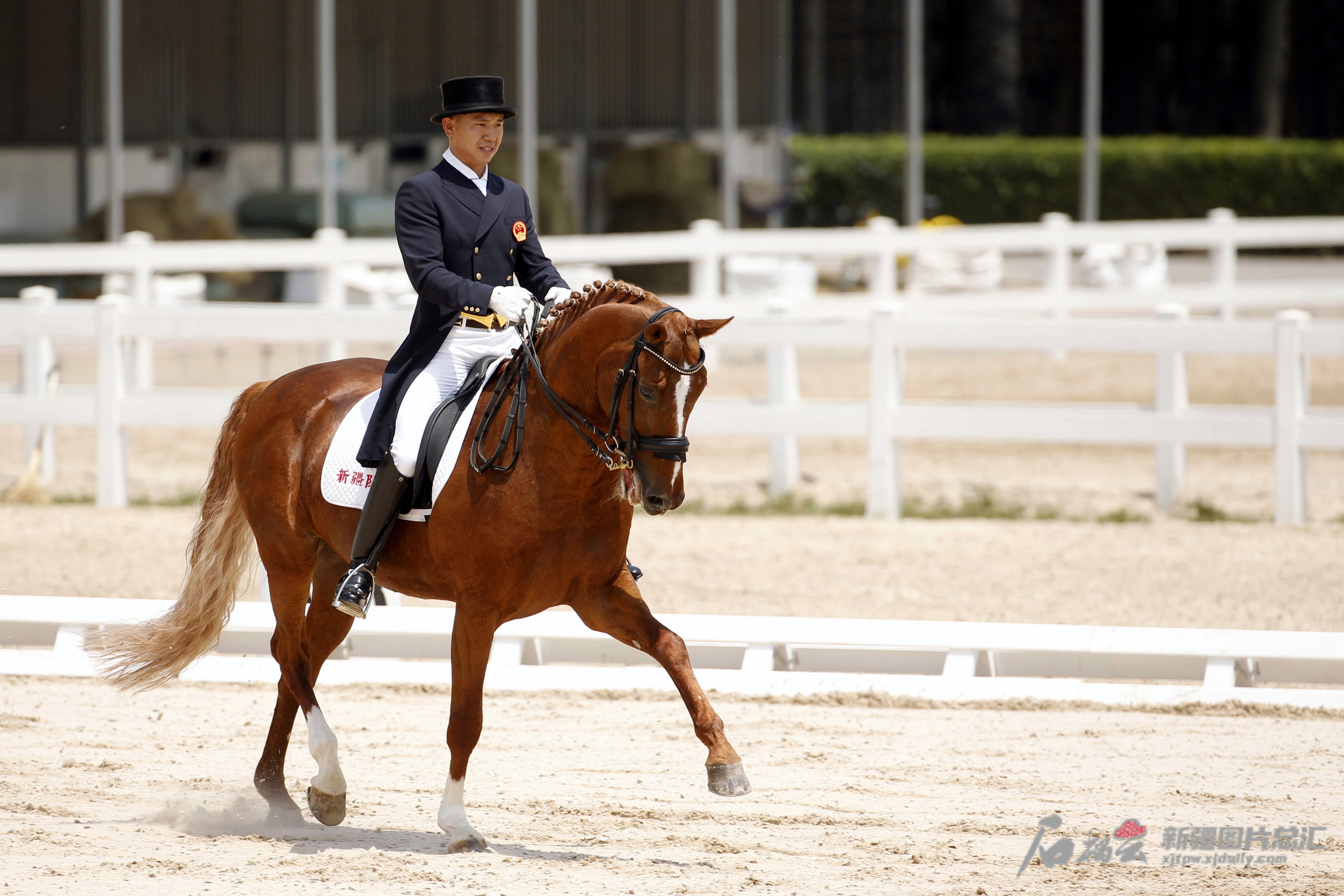 中国马术队盛装舞步项目的新疆骑手兰超与他的爱马Leone。自治区体育局提供