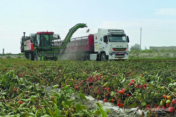 籍国印说:“我今年种了800多亩加工番茄,使用先进的番茄采收机,加工番茄被卷进采收机后,一些杂草、青果会被清除掉,而成熟、干净的果实就直接进入旁边的拉运车车厢里,完成了初步的筛选,又快又好。”