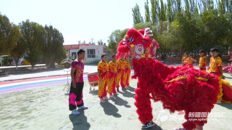 广东佛山援疆工作队在伽师大力推广岭南传统醒狮文化。图为伽师县英买里镇中学的同学们在练习。周旋摄