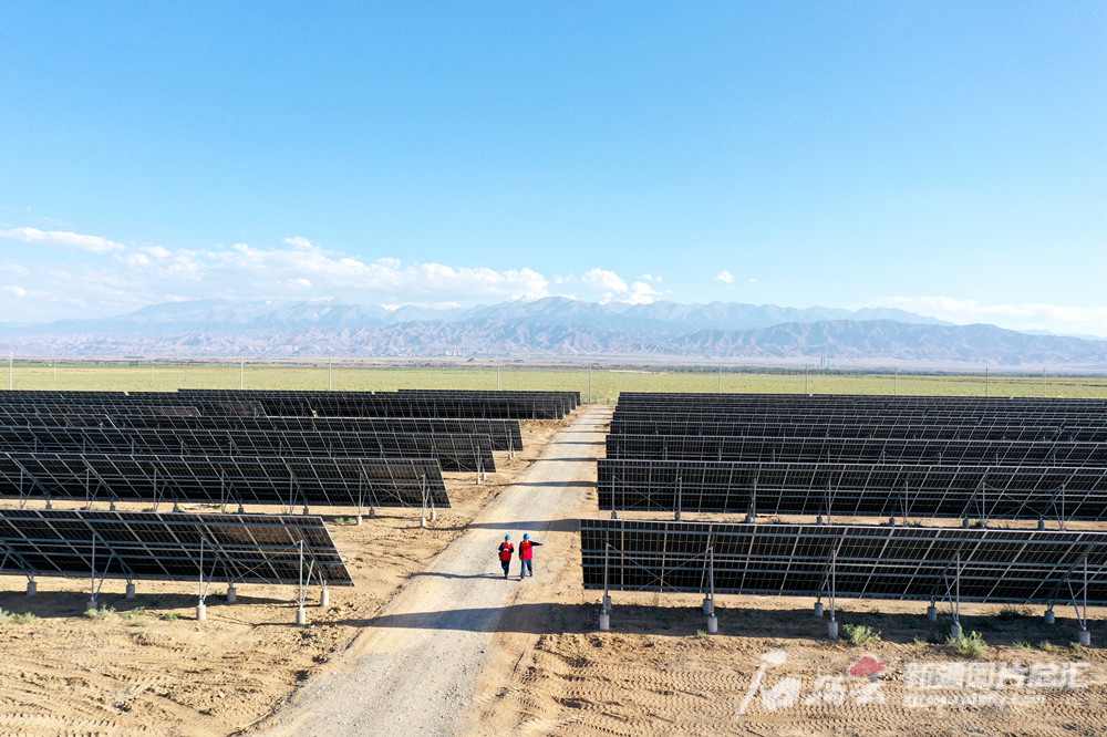 8月4日,国网新疆电力有限公司昌吉供电公司员工在光伏电站提供服务。马占财摄