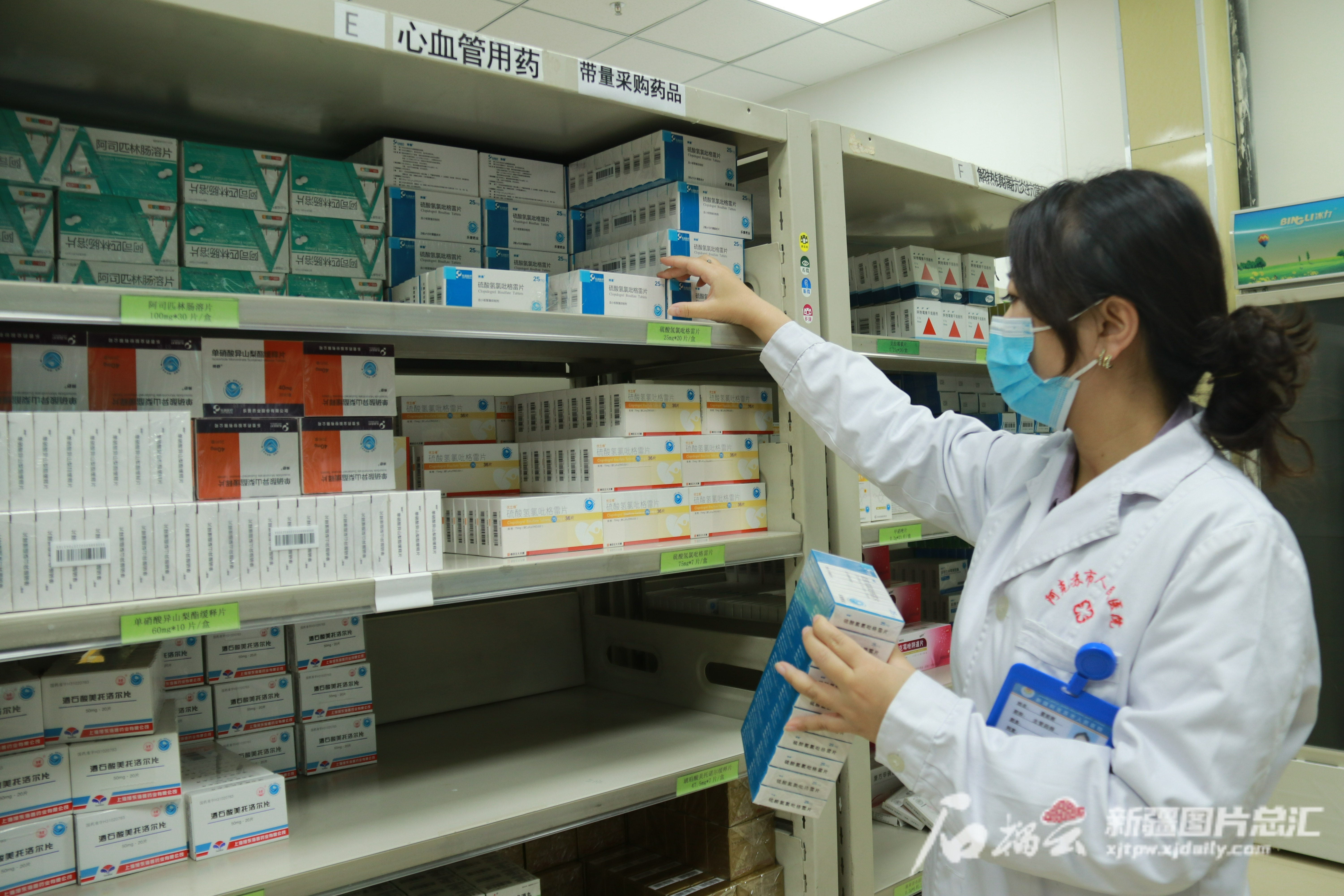 阿克苏市人民医院门诊药房的工作人员在整理集采药品。 贾晓毛 摄