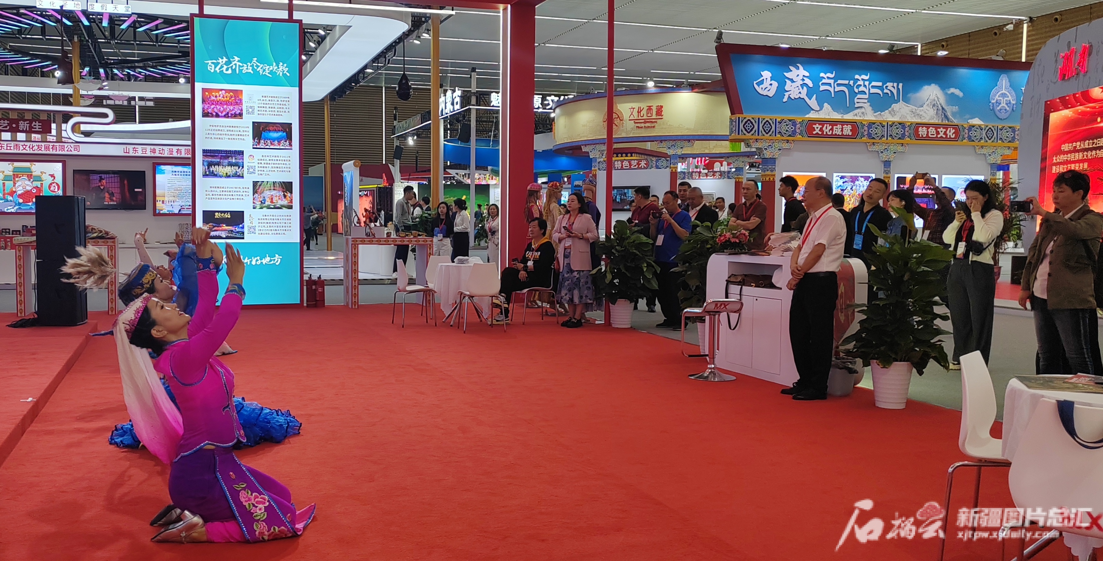 新疆馆精彩的歌舞表演让参展商和观众感受新疆歌舞文化之美。石榴云/新疆日报记者贾春霞摄