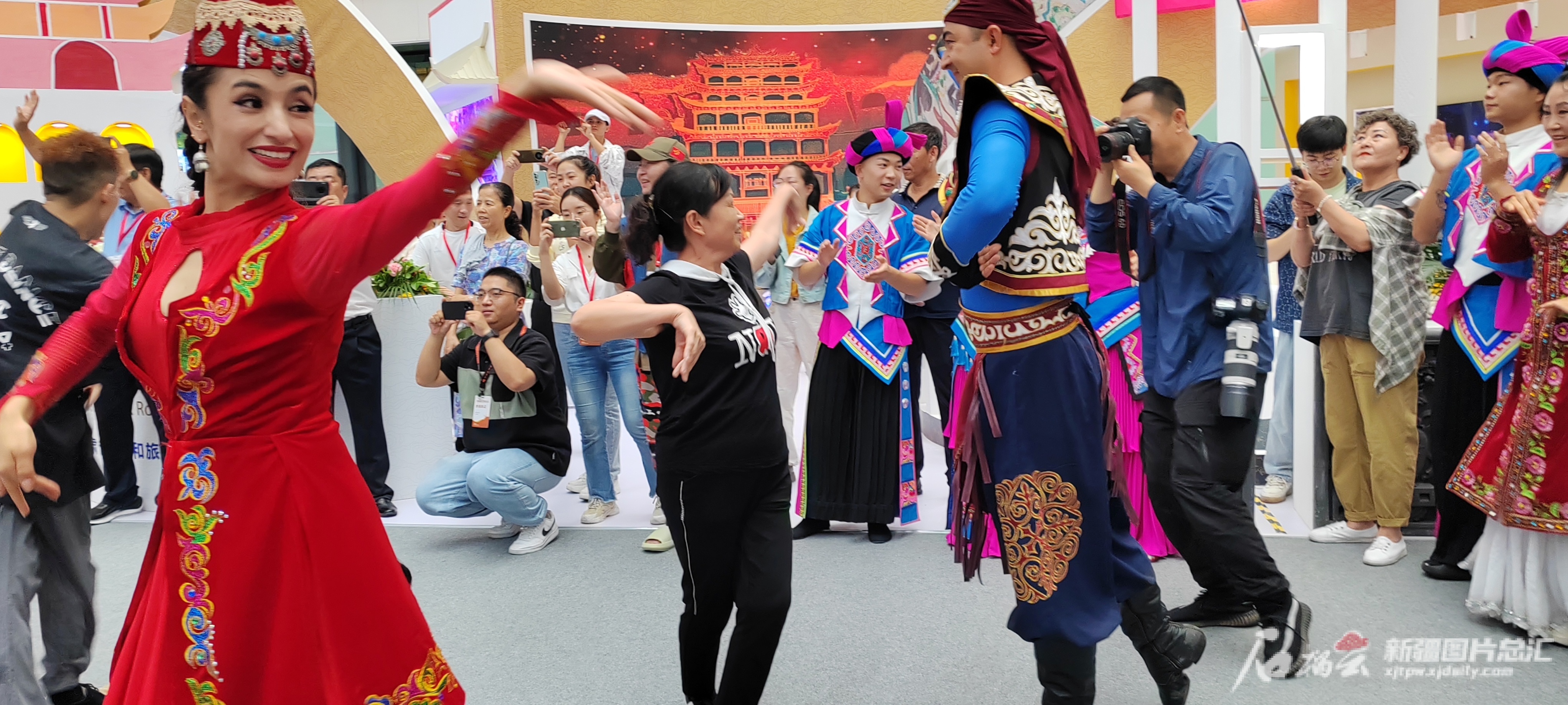 演博会上,在《爱我中华》的音乐声中,演员与观众共同起舞。石榴云/新疆日报记者贾春霞摄