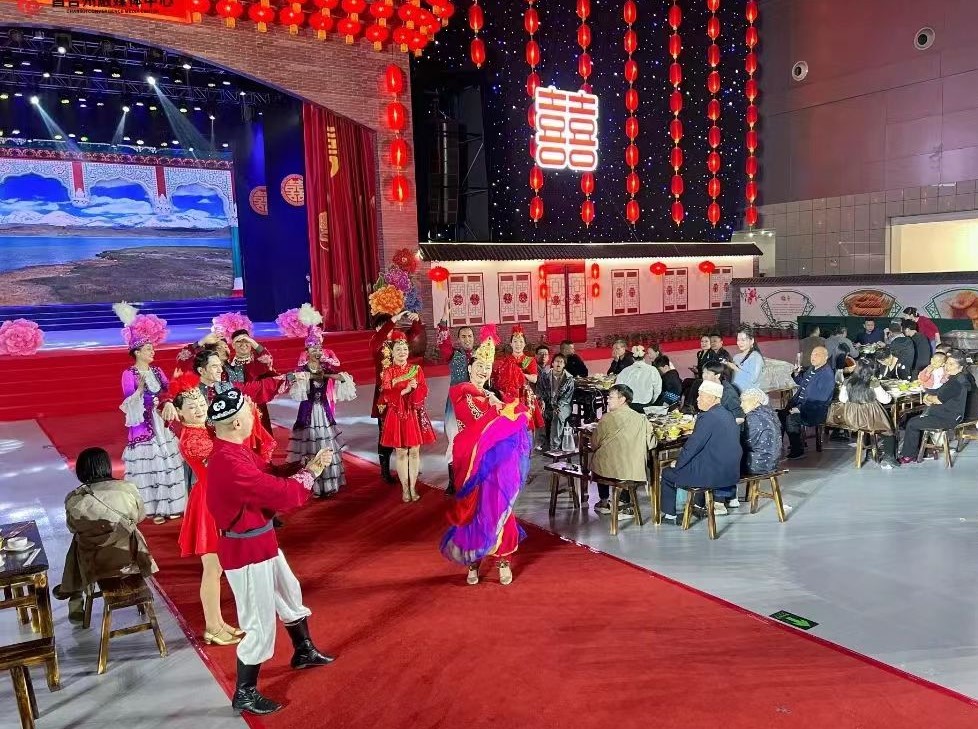 “哦哟,大家都来了嘛,快坐快坐……”10月1日13时,在位于昌吉国家农业高新技术产业示范区的新疆农业博览园A厅,随着主持人的一声吆喝,一场由昌吉回族自治州艺术剧院最新编创的沉浸式歌舞剧《喜宴》准时开演。