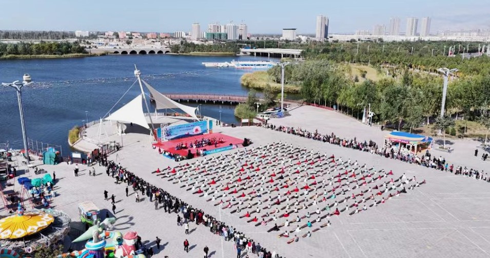 9月29日,库尔勒市举办中秋节《花好月圆》千人古筝展演。玉素甫·阿不力孜 摄
