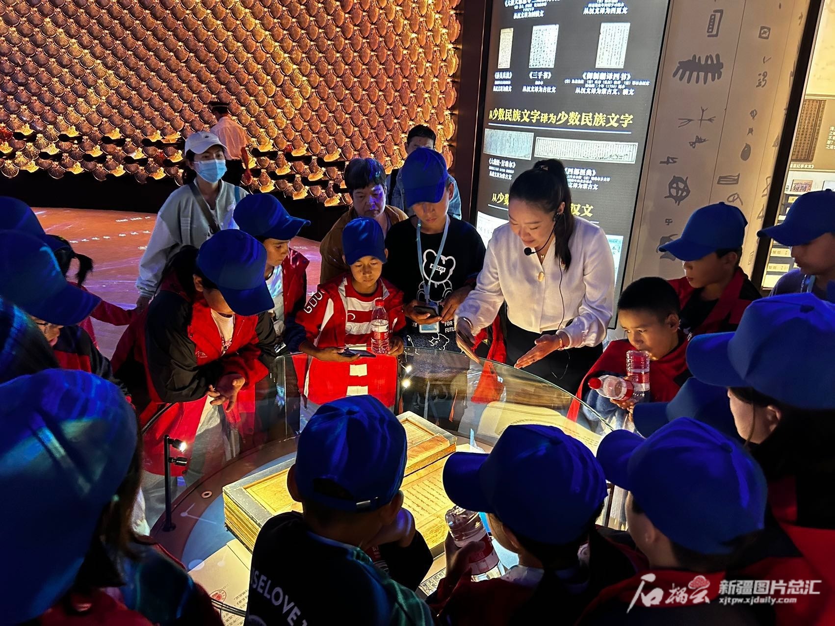 同学们认真地听讲解员讲解。 石榴云/新疆日报记者 张小宓摄