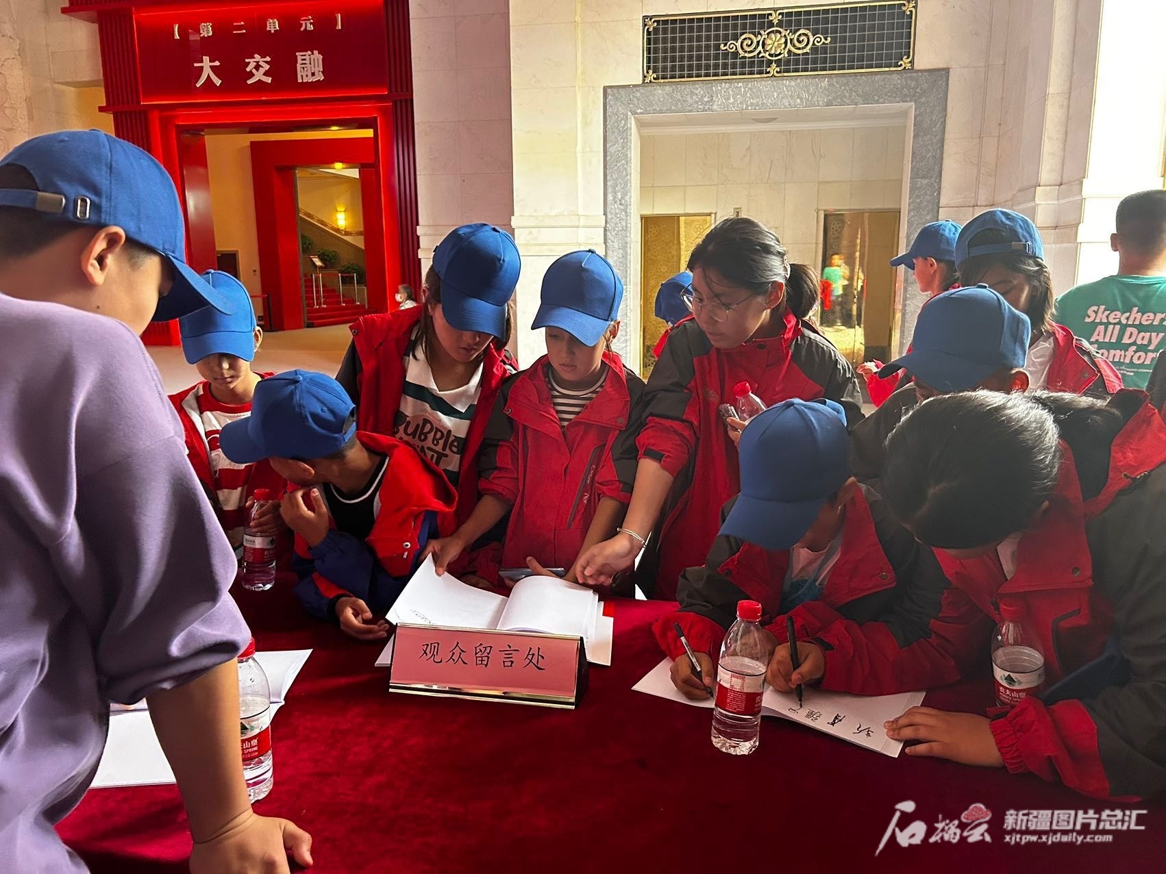 参观结束,同学们在留言簿上写下了真挚的话语。 石榴云/新疆日报记者 张小宓摄
