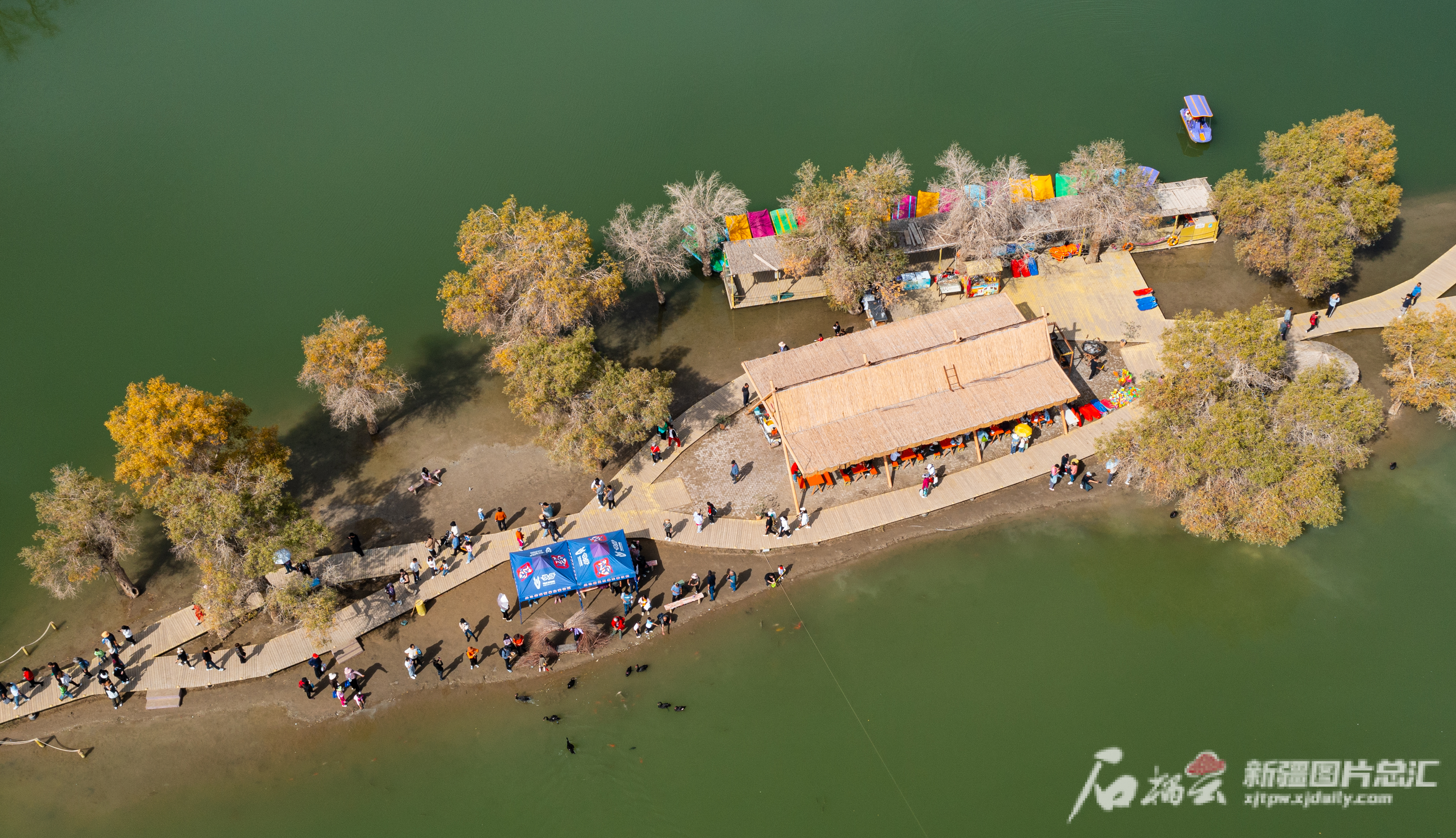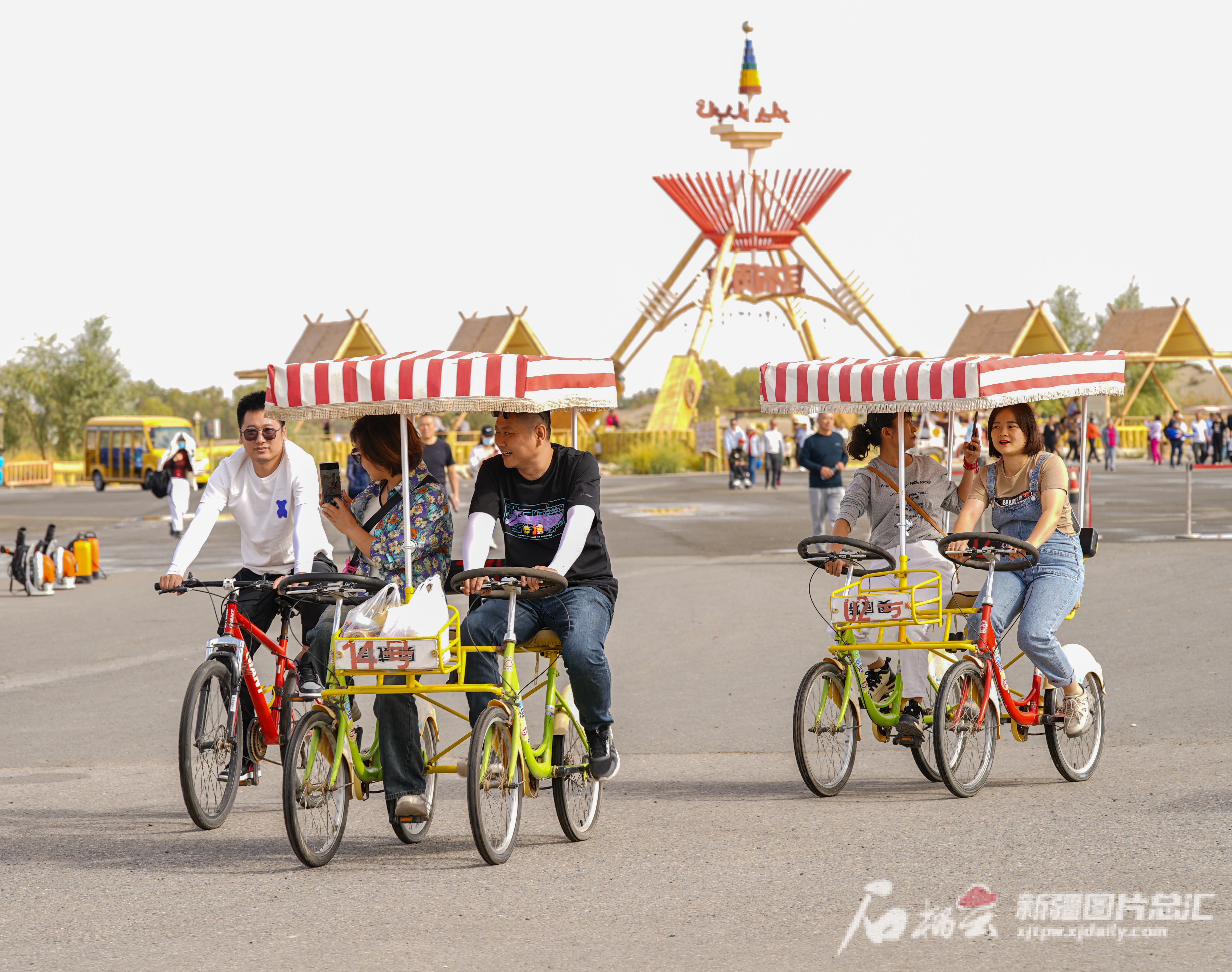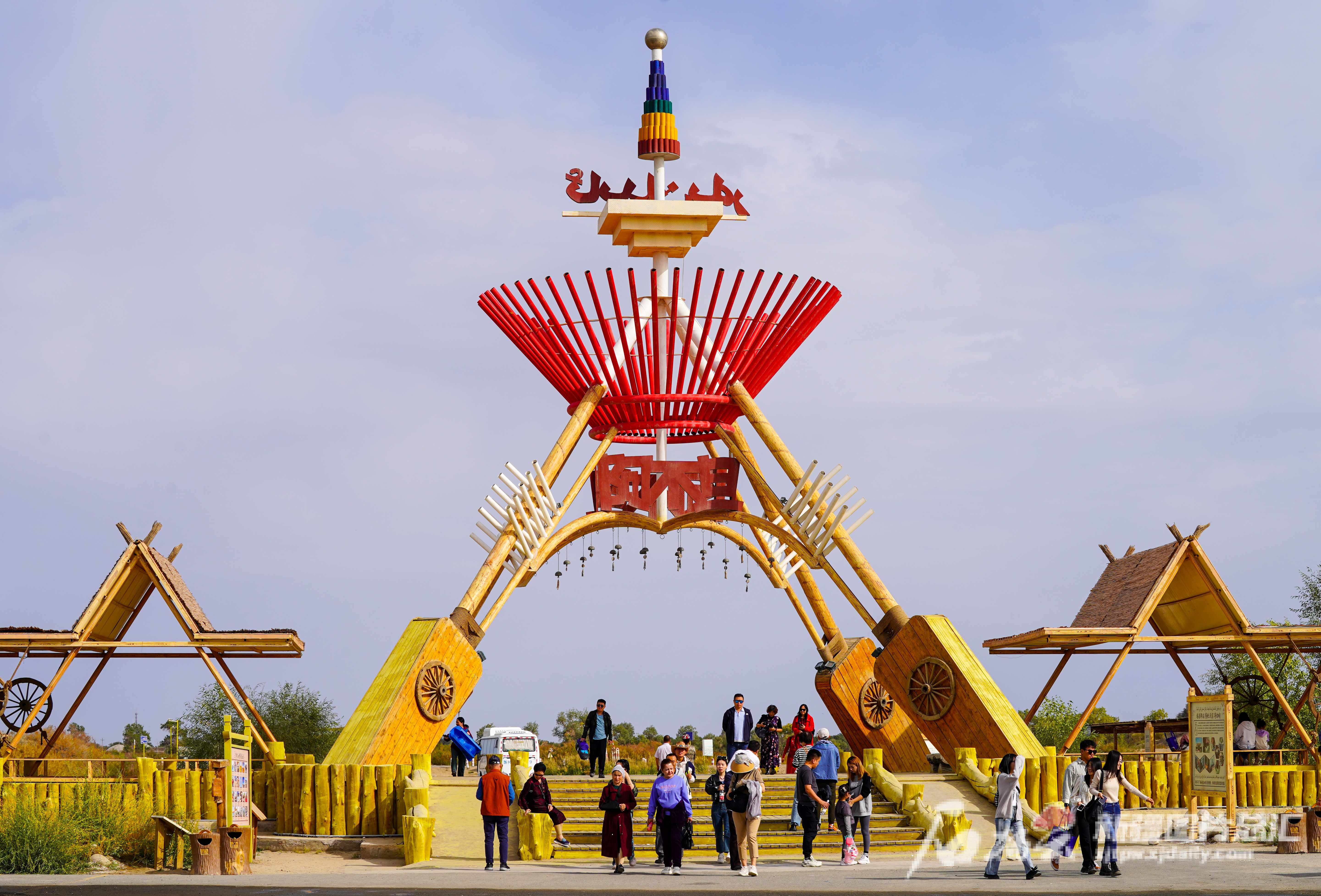 10月5日,游客在尉犁县罗布人村寨景区游玩。汪志鹏 摄