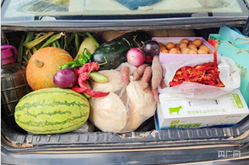 干辣皮子1公斤、土鸡蛋一箱、自家烤的馕一包……满满家乡味 (央广网发 王文霞 摄)